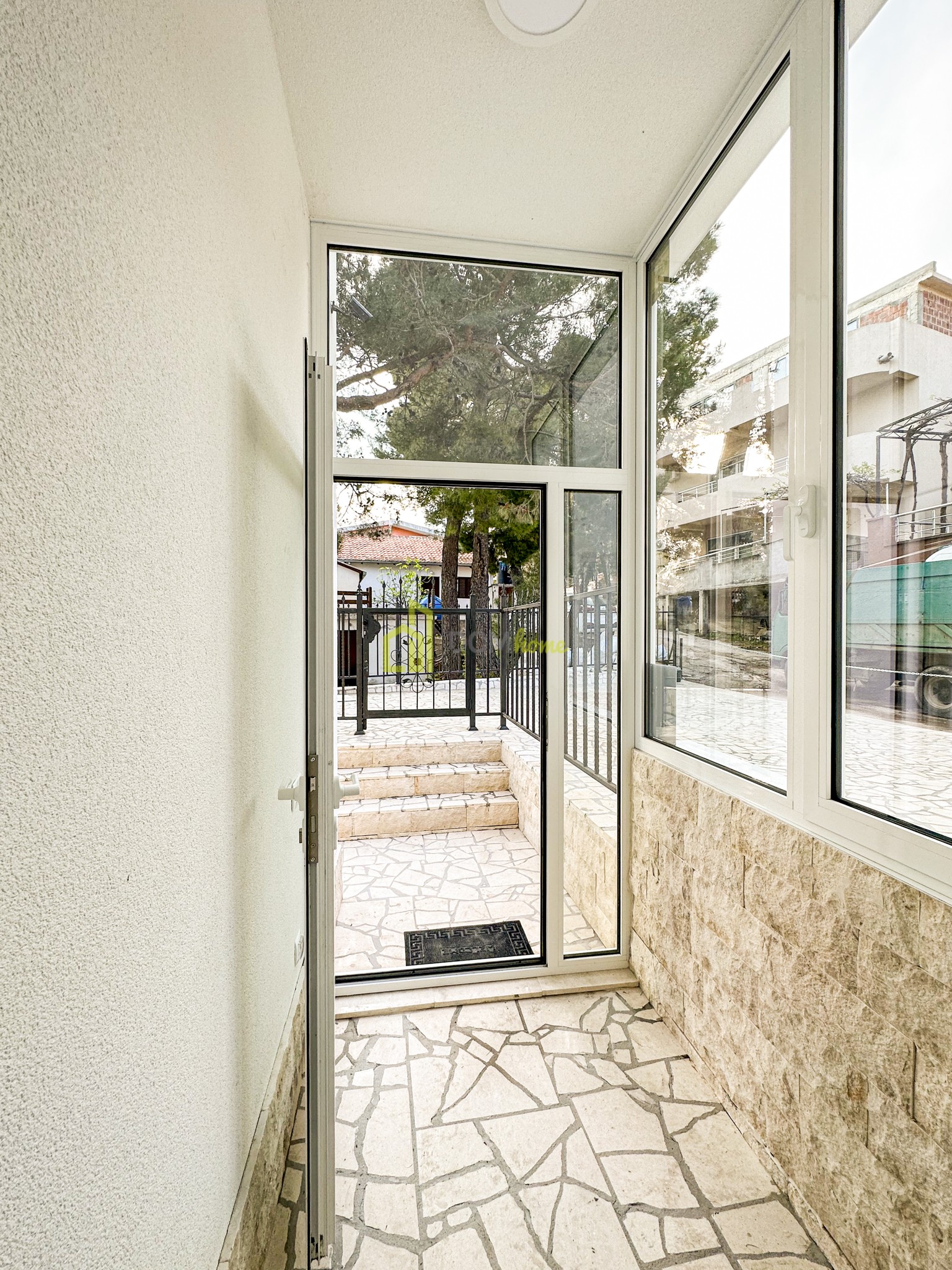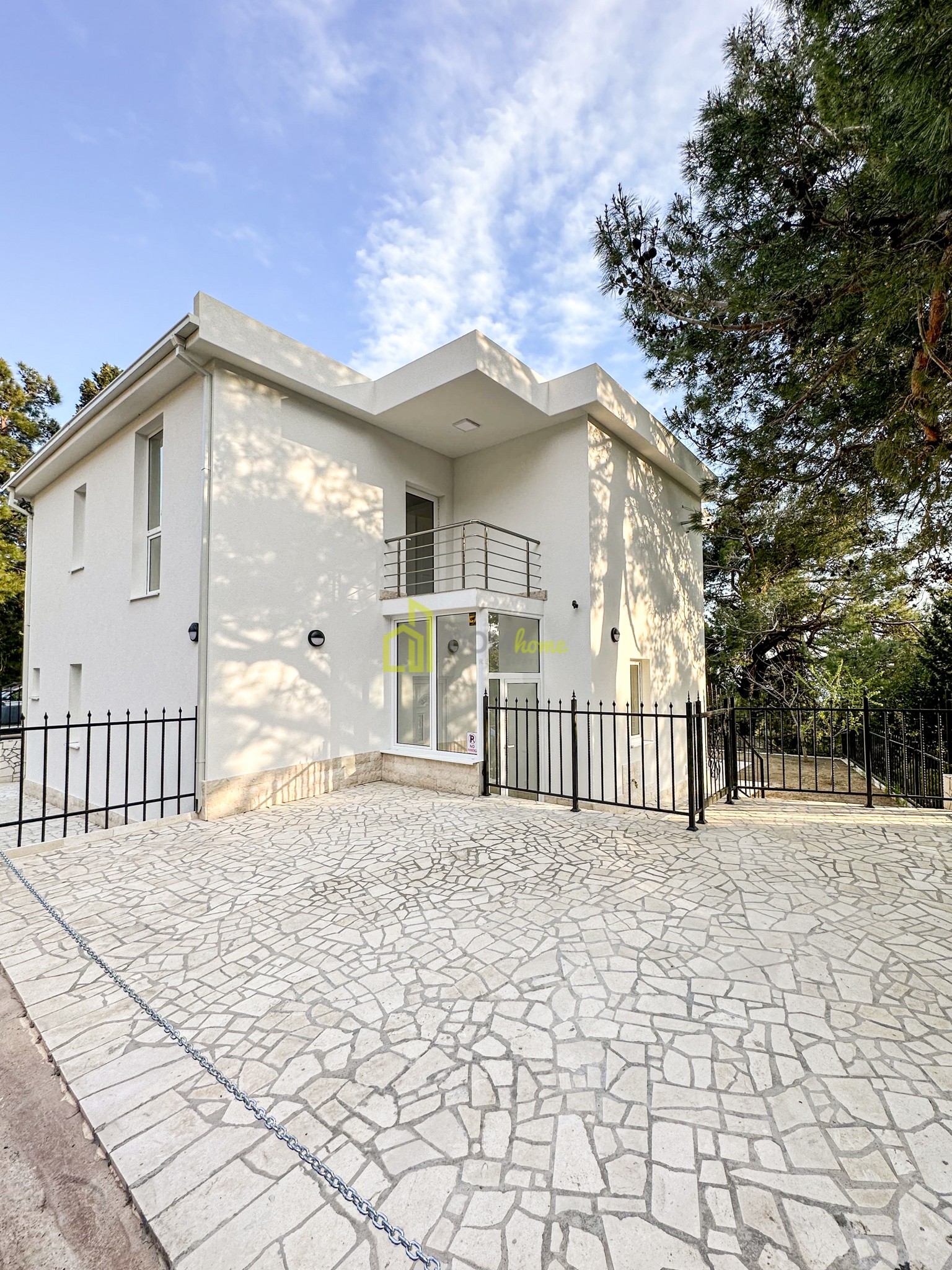hodnika i kuhinje se izlazi na otvorenu terasu. Mramornim stepenicama se dolazi do sprata gdje se nalaze 3 udobne sobe sa terasama sa pogledom na more, kupatilo i garderober. Na parceli ima prostora za izgradnju ljetne kuhinje, roštilja ili sadnju bašte.