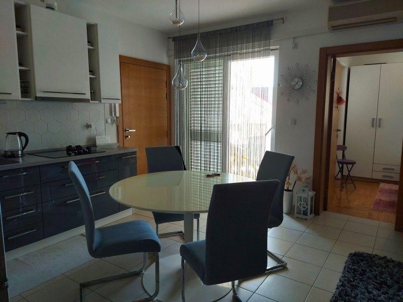 Stanu pripada i jedno parkirno mjesto u podrumu garaže od 11,48 m2 (etažirano zajedno sa stanom). Zgrada je izgrađena 2011.godine, stan je održavan i u originalnom stanju. Nalazi se na mirnoj lokaciji u blizini plaže i šetnice,(cca 300 m) a par minuta šetnje je udaljen od dućana, škole, autobusne stanice.