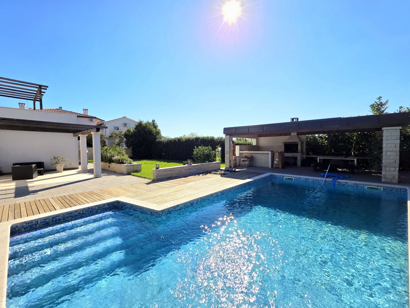 Opis (Engleski): Modern family house in Pula, 2.5 km from the sea, with three residential units, a swimming pool, and an open view.We present a unique opportunity – a modern, high-quality family home located in a peaceful residential area of Pula, in a quiet cul-de-sac with no traffic. Ideal for those seeking comfort, privacy, and a touch of greenery, this property is just a few minutes’ drive from the city center. The house combines functionality, spaciousness, and contemporary living, offering three separate residential units, making it a perfect choice for a large family, multi-generational living, or an excellent investment opportunity with strong potential for tourist rental.With a total living area of 250 m², the house extends over two floors and a small attic space. The main residential unit is located on the first floor, featuring a bright and spacious apartment with three bedrooms and two bathrooms. The elegant entrance hall with a wardrobe area leads into a corridor that connects all rooms....