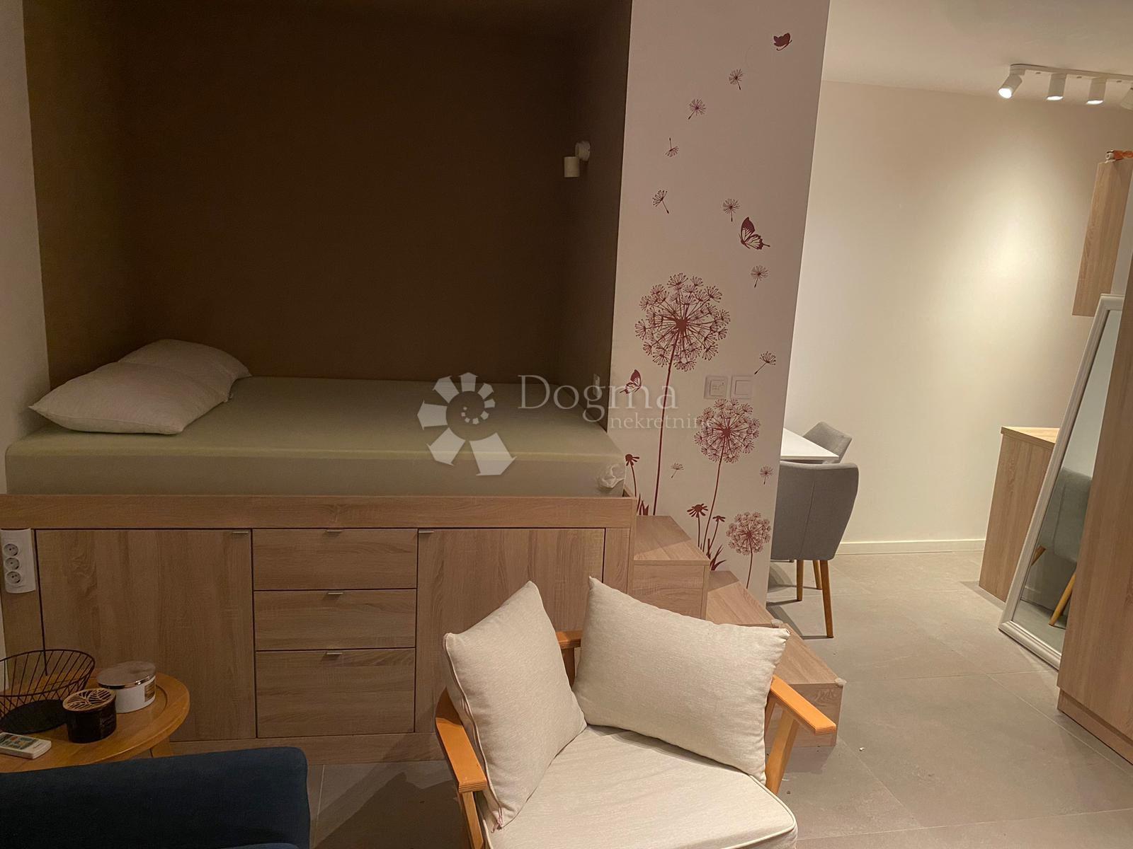Stan površine 18 m² iznenađujuće je funkcionalan i pametno osmišljen. Potpuno je renoviran 2023. godine i opremljen modernim sadržajima: podnim grijanjem, klimom, novom PVC stolarijom s električnim roletama i elegantnom kupaonicom s tuš-kabinom.