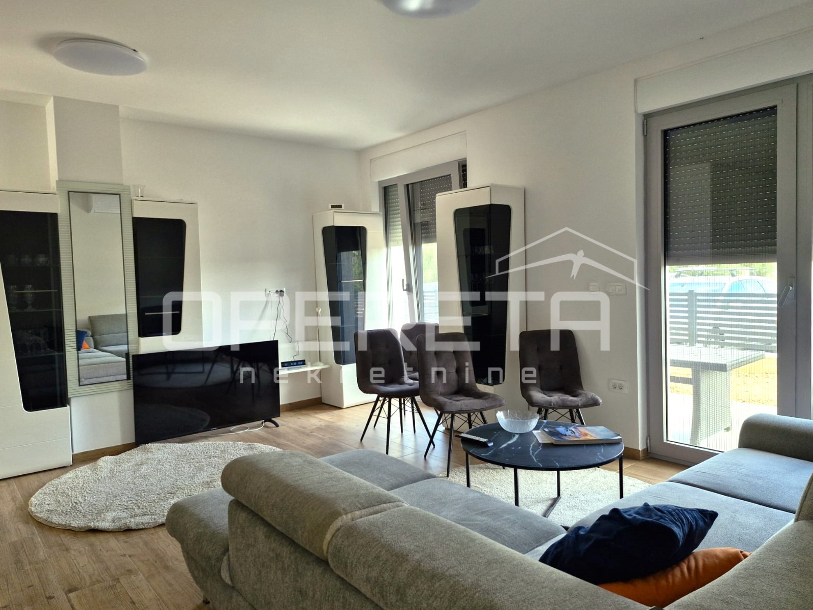 Opis: Stan 2S sa vrtom i parkingom, novogradnja, KorčulaProdaje se moderno uređen stan u prizemlju novije zgrade na otoku Korčuli, u mirnom i uređenom dijelu naselja s osiguranim parkirnim mjestom u dvorištu. Stan obuhvaća 52,62 m2 unutarnjeg prostora koji čine ulaz, hodnik, kupaonica, dvije udobne spavaće sobe te prozračan dnevni boravak povezan s kuhinjom i blagovaonicom. Iz dnevnog dijela izlazi se na dvije terase i vrt površine 22,02 m2, savršen za opuštanje u privatnosti ili stvaranje male mediteranske oaze. Posebnu vrijednost ovoj lokaciji daje blizina gradskih bazena, koji se nalaze neposredno pored zgrade, kao i uređenih plaža do kojih se može doći laganom šetnjom. Okruženje odiše mirom i zelenilom, a u blizini su i svi potrebni sadržaji – trgovine, restorani i šetnice uz more.Stan je smješten na atraktivnoj poziciji koja spaja udobnost svakodnevnog života s opuštenim otočnim ugođajem. Zgrada je novije gradnje, uredno održavana, a naselje tiho i sigurno, idealno za obiteljski život ili boravak tijekom cijele godine....