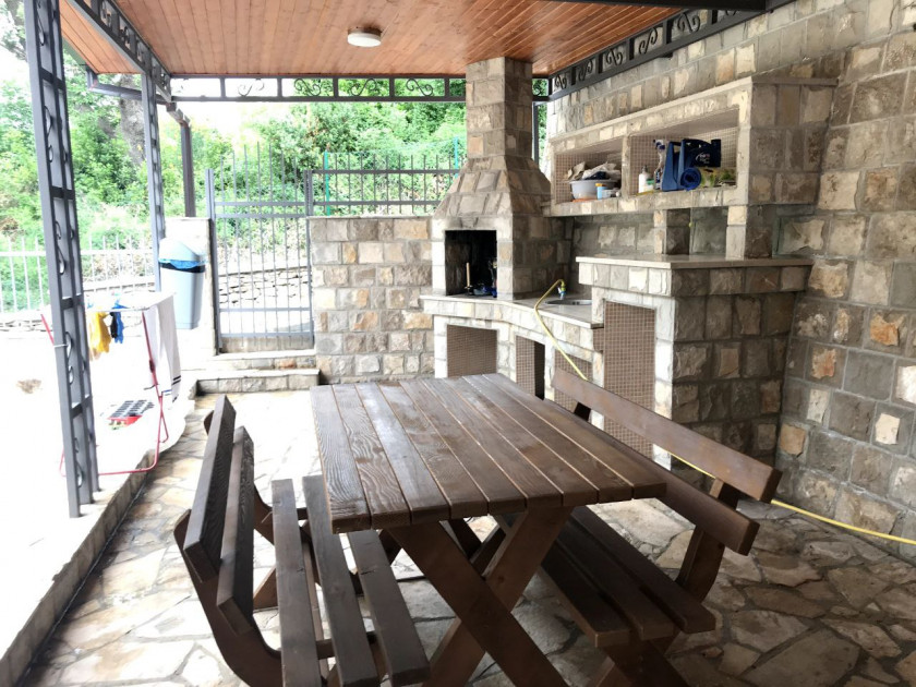 Zatvorena terasa sa zonom za roštilj i mestom za odmor.