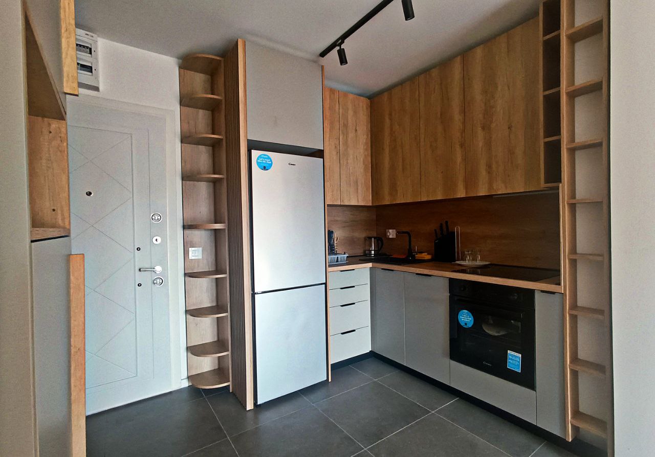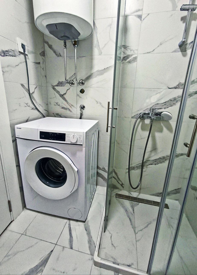 Kuhinja sadrži indukcionu ploču sa četiri ringle i rernu, mašinu za pranje sudova i električno kuvala. Stan ima Smart TV, mašinu za pranje veša, usisivač, dasku za peglanje i peglu, sušare za suđe i veš.