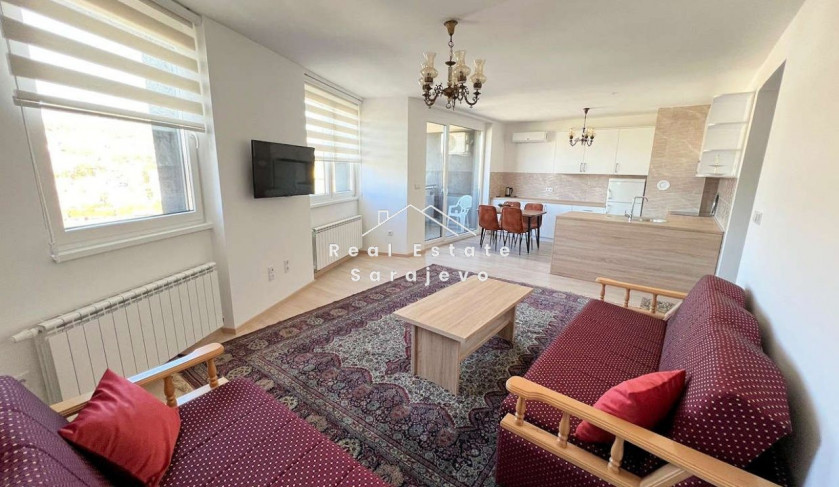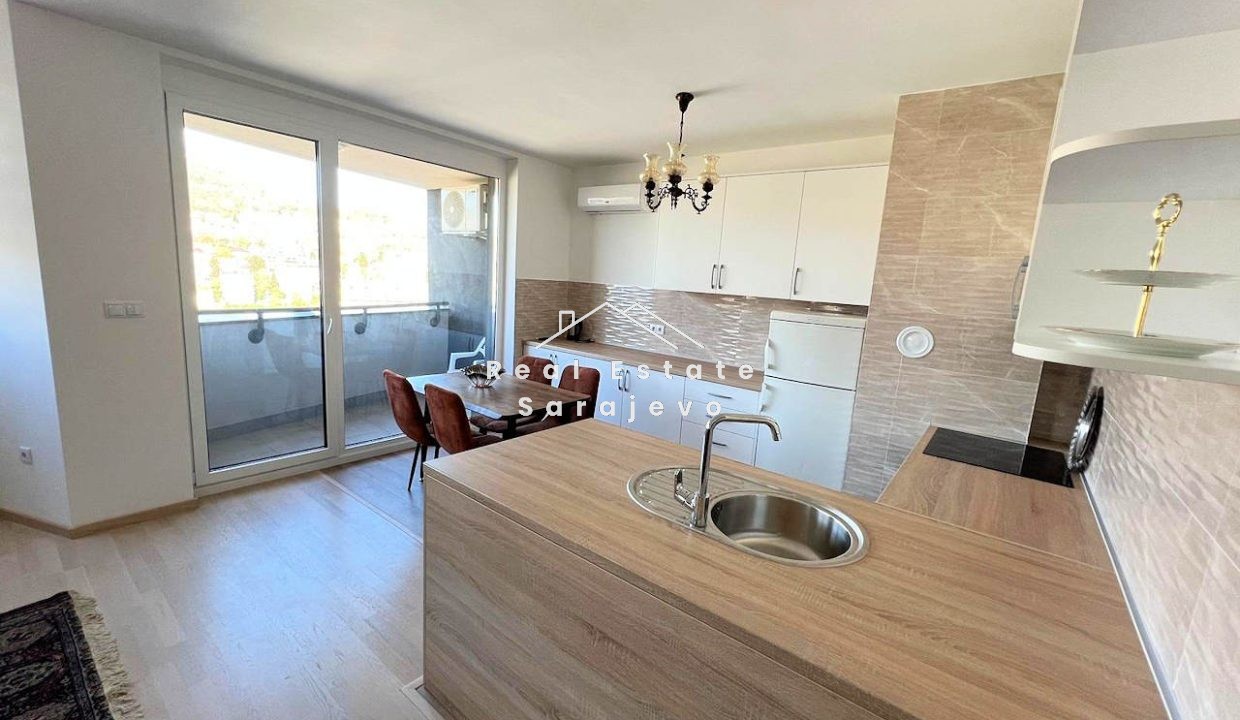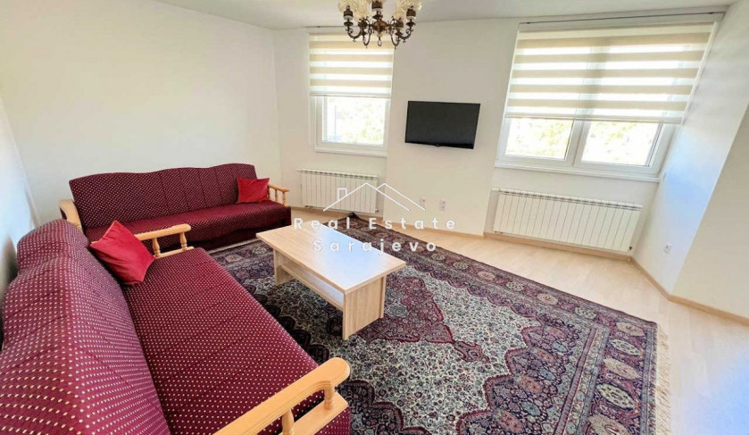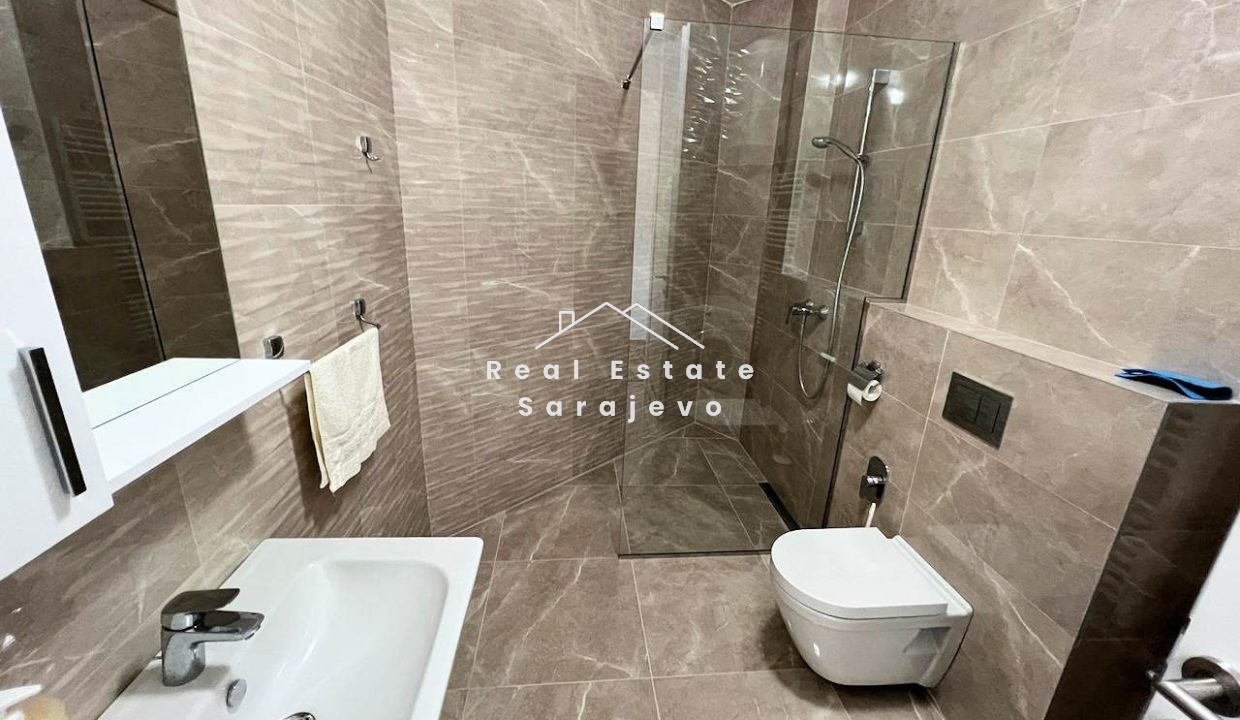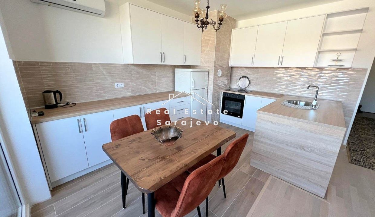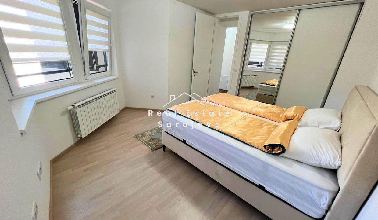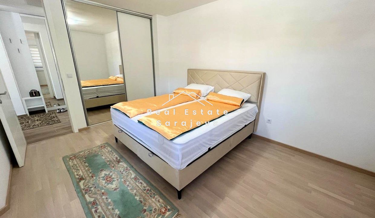 Opis: Kod 8080 - Ovaj lijep dvosoban stan za iznajmljivanje nalazi se na jedanaestom spratu (lift) nove stambene zgrade na Malti, u Novom Sarajevu, nekoliko koraka od Mercator šoping centra i samo 5 minuta autom od centra grada. Stan ima 67 m2 površine i sastoji se od dnevnog boravka sa trpezarijom i u potpunosti opremljenom kuhinjom, spavaće sobe, kupatila sa tuš kabinom, hodnika i balkona sa lijepim pogledom. Kompletno je namješten. Stan ima etažno grijanje na plin, klimu, sigurnosna vrata, mašinu za veš, mašinu za suđe, kablovsku TV, brzi internet pristup i garažu.