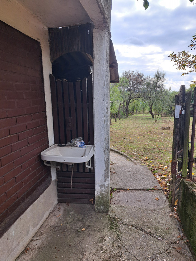 Opis: Kuća prizemna površine 60m2 (hodnik,kupatilo,kuhinja, dve spavaće sobe, pomoćni objekat - šupa, plac 34 ara,blizu asfalta,voda, struja