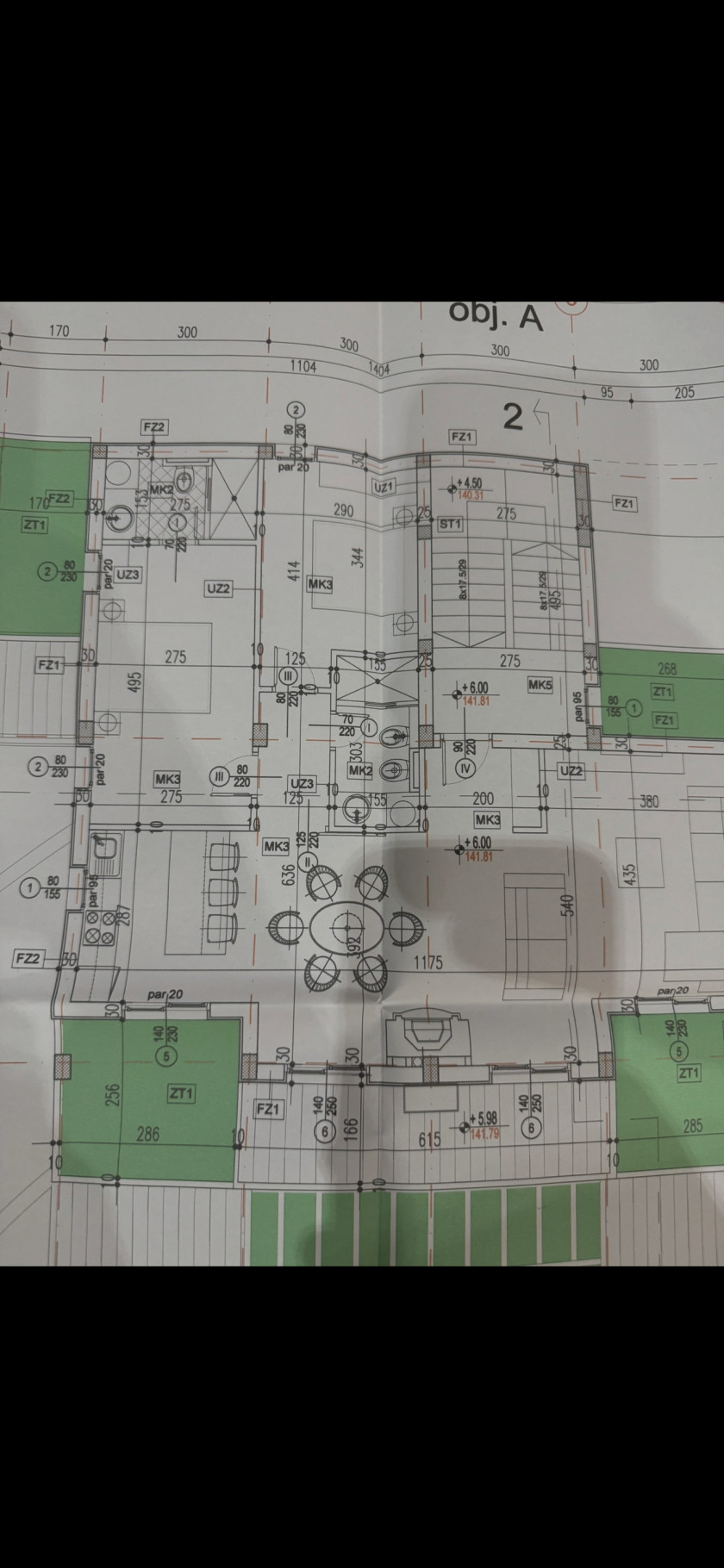 Zgrada posjeduje garažu sa 14 parking mjesta i bazen.