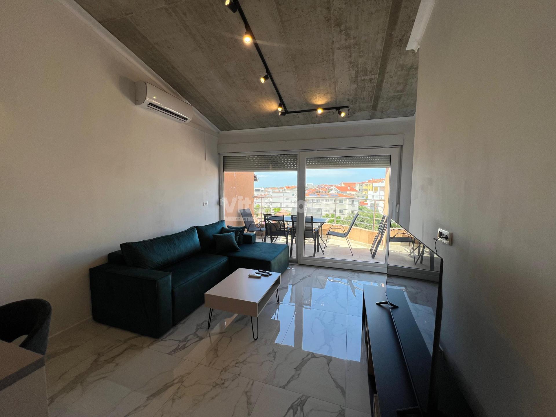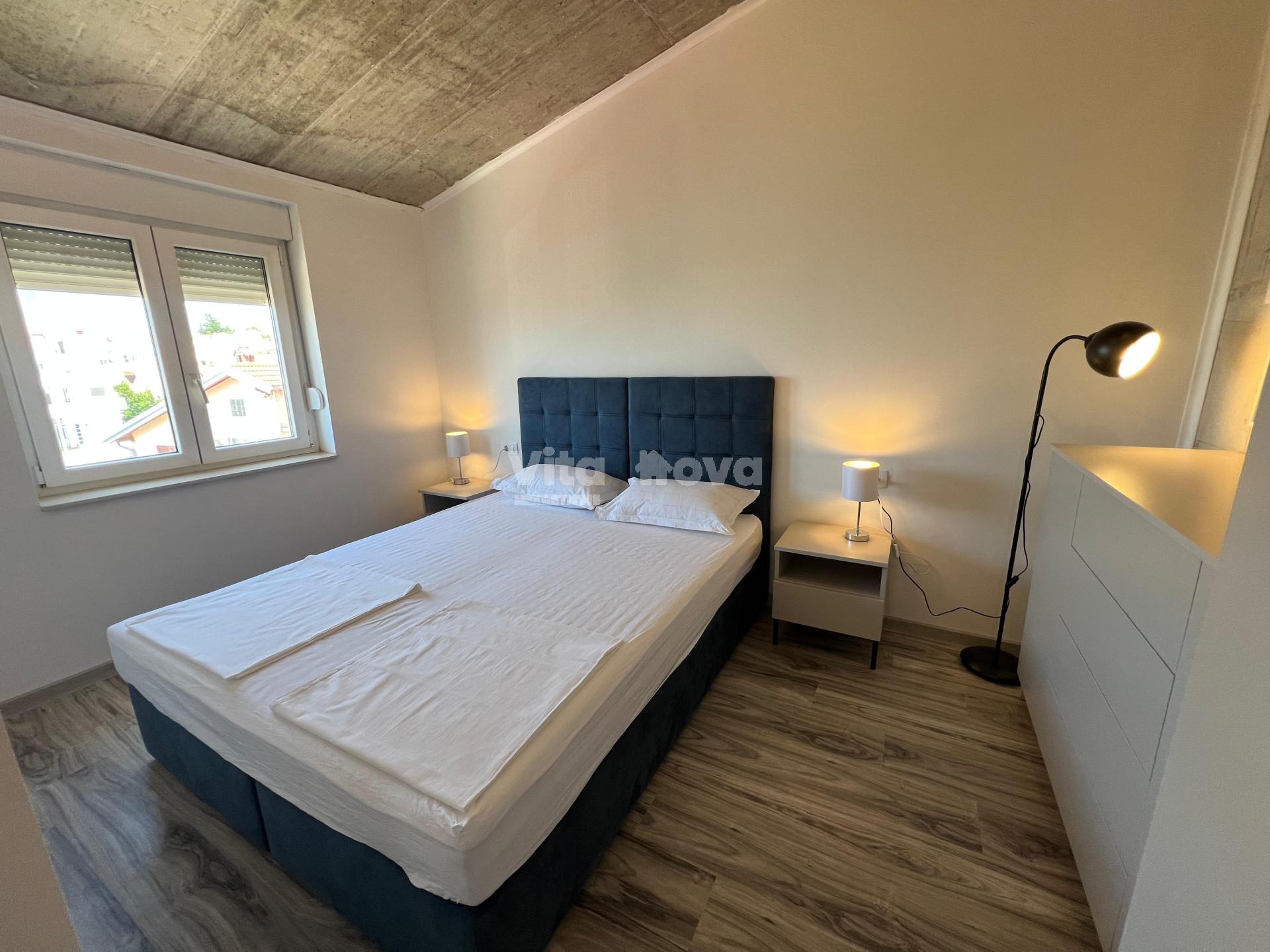 Opis: Iznajmljuje se 2-soban stan na visokom potkrovlju novije stambene zgrade na Boriku. Stan se sastoji od dvije spavaće sobe, kupaonice, kuhinje, blagovaonice i dnevnog boravka s balkonom sa kojeg se pruža prekrasan pogled na more. Stan je moguće iznajmiti do 01.05.2026.g.
