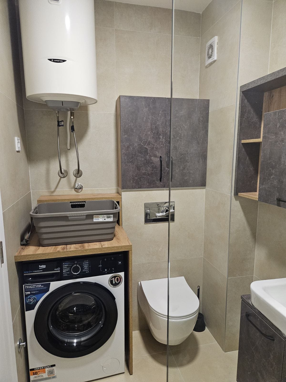 A fully furnished, brand-new, and never-before-occupied one-bedroom apartment of 45 m² is available for rent. It is located on the 4th floor of the modern, newly built Nivel building in Zabjelo (not the top floor).