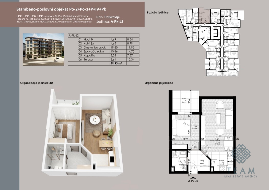Opis: Prodaje se jednosoban stan površine 49,93m², dostupan na svim spratovima stambene zgrade u izgradnji Pod Ljubović, Podgorica.