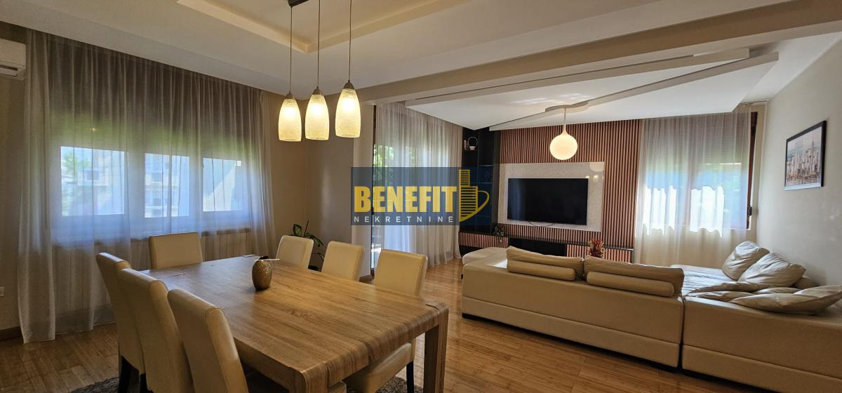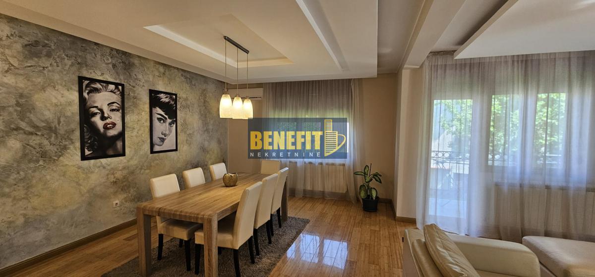 Opis: Na Voždovcu, u ulici Vanđela Tome izdaje se izvanredan, četvorosoban, luksuzno namešten stan. Stan je površine 120m2, a nalazi na visokom prizemlju dvospratnice novije gradnje. Zgradi pripada i dvorište koje mogu koristiti samo stanari zgrade.