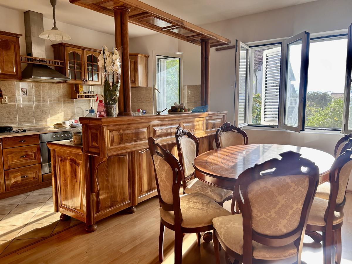 A spacious and bright apartment for rent on the ground floor of a family house in Kaliman, Tivat. The apartment is located in a quiet location, a 10-minute walk from the city center and 500 meters from the sea. It has two bedrooms, two bathrooms, a living room with an open kitchen, a terrace and a veranda. The total living area is 100 m², and the apartment comes with an attached yard of 150 m² and two parking spaces.