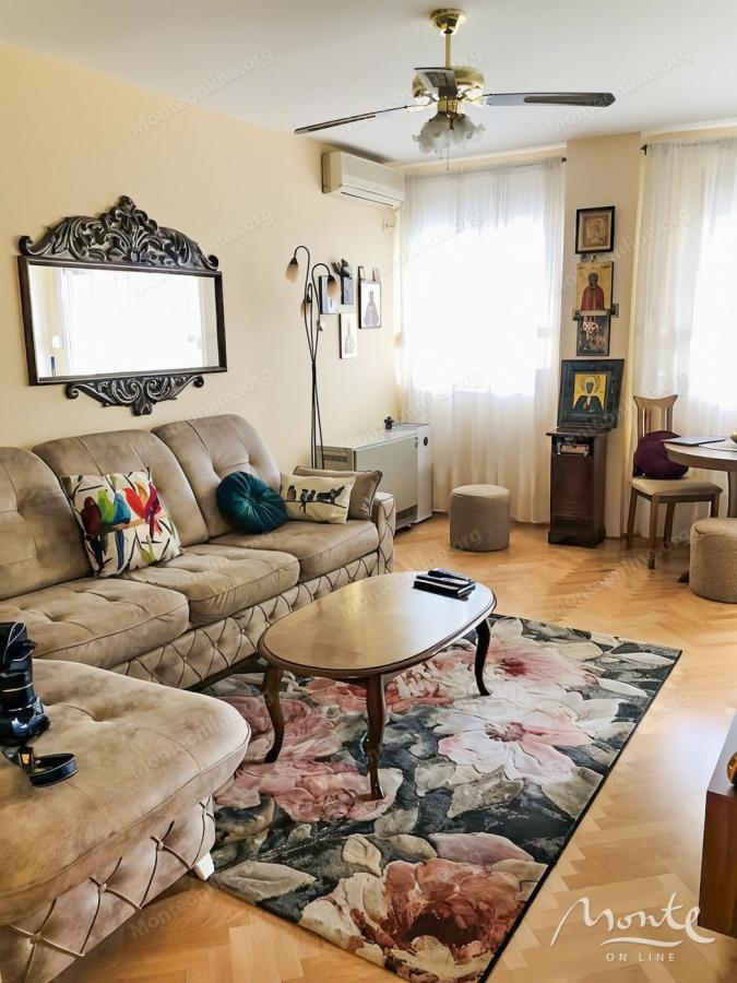 Opis: Prodaje se potpuno renoviran i namješten dvosoban stan od 85 m² (prema dokumentaciji 73 m² + terase + podrum 5 m²) u jednom od najprestižnijih i najtraženijih dijelova Podgorice, Preko Morače, ulica Đure Salaja.