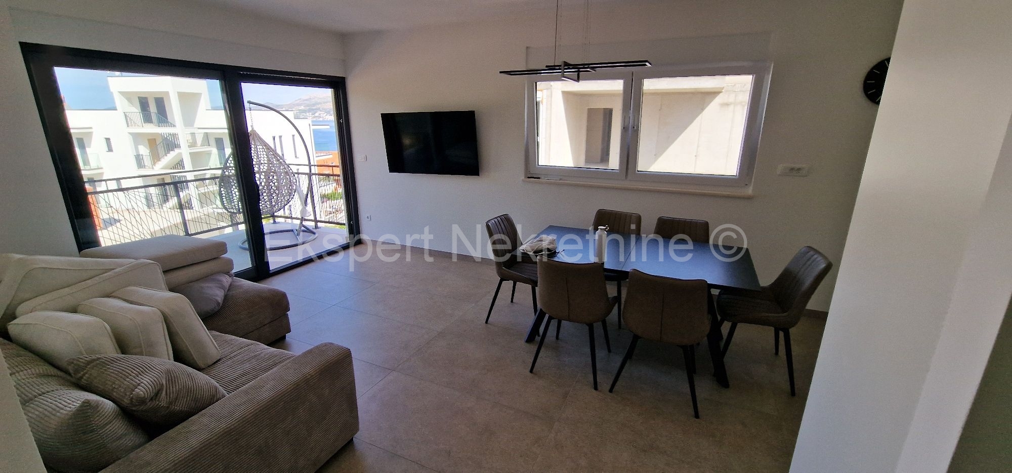Opis: Čiovo,Okrug Gornji,komforan dvosoban stan 75 m2 ( 58 m2 stana +17m2 balkona) , u novogradnji samo 250 m udaljen od mora i plaže.Stan se nalazi na prvom katu zgrade te je sjever-jug-zapad orijentiran a sastoji se od dvije spavaće sobe,kupatila,kuhinje sa blagovaonicom i dnevnim boravkom,te velikog balkona 17 m2. Stanu pripada i jedno vanjsko parking mjesto. Stan se nalazi u novogradnji koja je u fazi dvoršenja radova te će uskoro biti useljiva.Stan je kompletno namješten novim i modernim namještajem koji je u cijeni. Kvalitetna gradnja i oprema stana (kvalitetna keramika ,podno grijanje u cijelom stanu ,električne rolete,klime u svim prostorijama,velika staklena stjenka na dnevnom boravku, itd..).Odlična i mirna lokacija ,blizu mora i plaže.