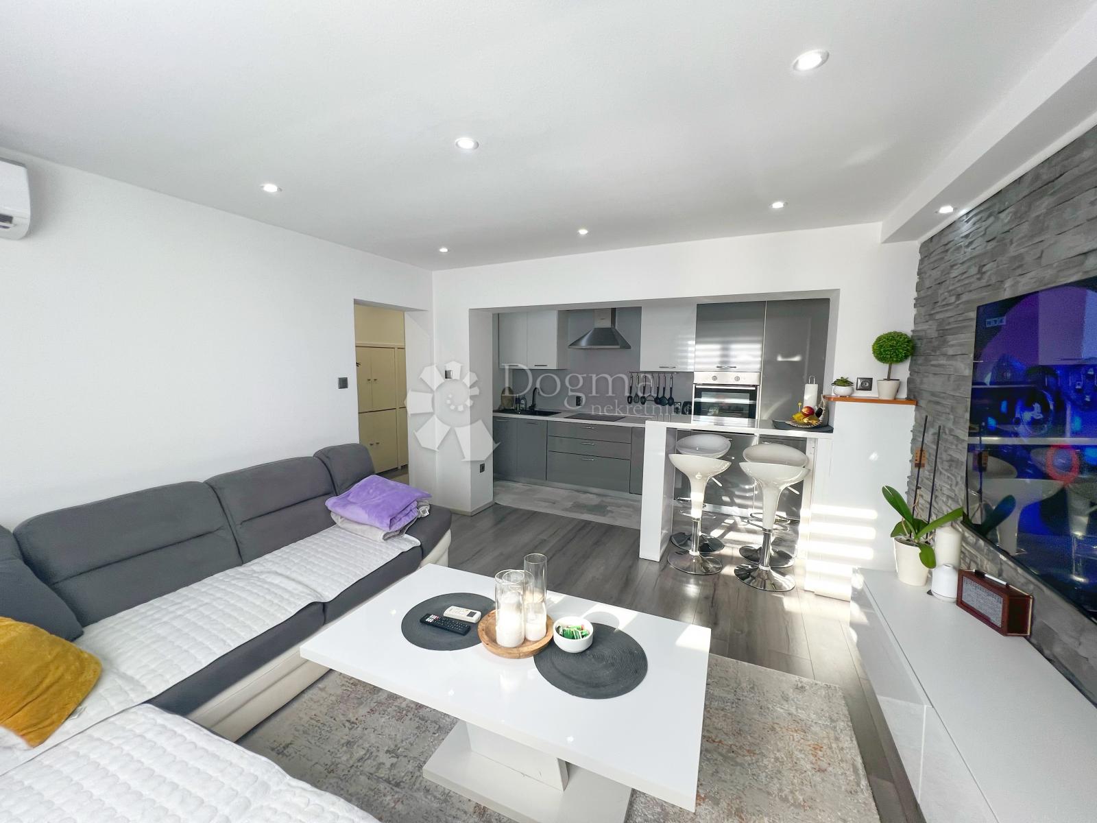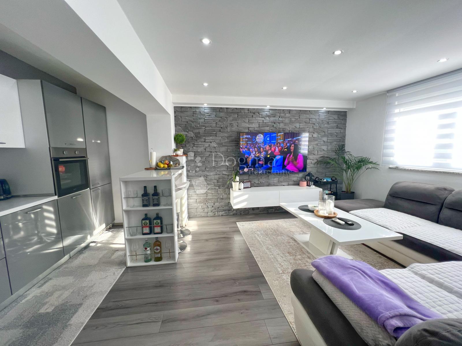 Nekretnina se sastoji od prizemlja i kata. U prizemlju nalazimo ulazni prostor, kupaonicu, dnevni boravak sa kuhinjom i blagavaonicom, te jednu prostranu spavaću sobu koja može imati svoj zasebni walk-in ormar. Preko detaljno uređenog stepeništa punog svjetlosti dolazi se na prvi kat gdje se nalaze dvije spavaće sobe sa izlazima na balkon, kupaonica te izlaz na lijepo uređenu prostranu terasu gdje se nalazi još jedna ostava i kamin.