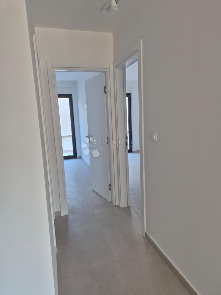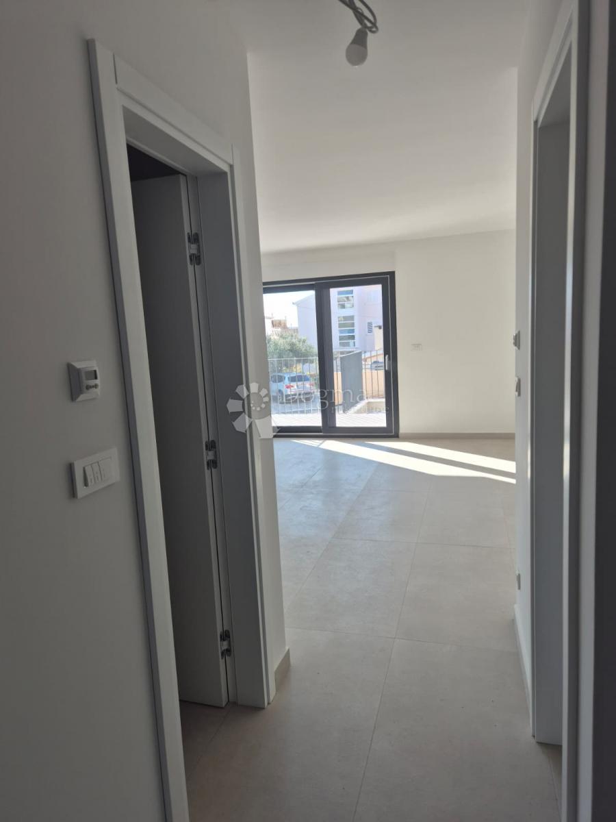 Na prodaju je moderan stan u visoko kvalitetnoj novogradnji u Okrugu Gornjem, udaljen svega manje od 150 metara od mora i plaže.