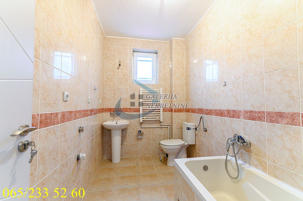 U prilici smo da Vam ponudimo dvosobnu nepokretnost na visokom prizemlju dvospratne zgrade sa malo stanova, zidane 2012 godine, koja se nalazi u sklopu lepo uređene, mirne ulice, sa novijom gradnjom i zelenim površinama. Oko zgrade je postavljeno šest kamera za video nadzor, a trenutno se pristupilo uređenju baštenskog dela sa platformom i garniturom za sedenje, za stanare zgrade. Stan je dvostrano orijentisan, komforan, funkcionalnog rasporeda prostorija, svetao i sunčan. Iz hodnika se ulazi u sve prostorije, a sve prostorije imaju prirodnu ventilaciju. Izolacija u stanu je dupla, spoljašnja i unutrašnja, petokomorni PVC prozori sa roletnama i komarnicima, na podovima je kvalitetan parket. Španska kvalitetna keramika, blindirana ulazna vrata vrhunskog kvaliteta, grejanje je centralno, na gas. Potpuno nov i neuseljavan, projektovan da zadovolji potrebe savremene porodice.
