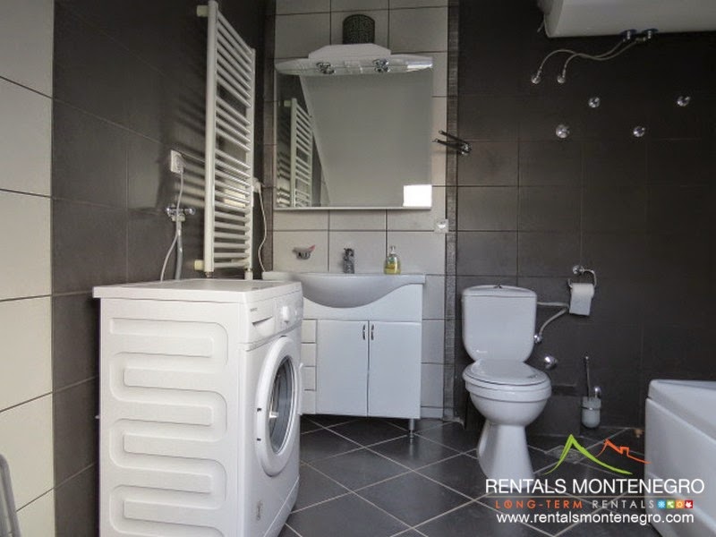 Prostrano, moderno kupatilo sa toaletom, tušem, đakuzijem (sa TV-om, radiom i rasvjetnim sistemom) i mašinom za veš