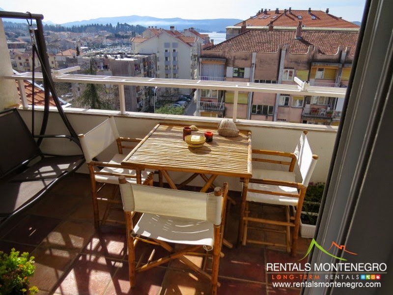 Moderan, prostran i udoban stan na petom spratu zgrade (potkrovlje). Nalazi se u samom centru grada, sa fantastičnim pogledom na more, na svega 3 minuta hoda od mora (ili Porto Montenegra) i 5 minuta vožnje do aerodroma. Površina stana iznosi 82m2.