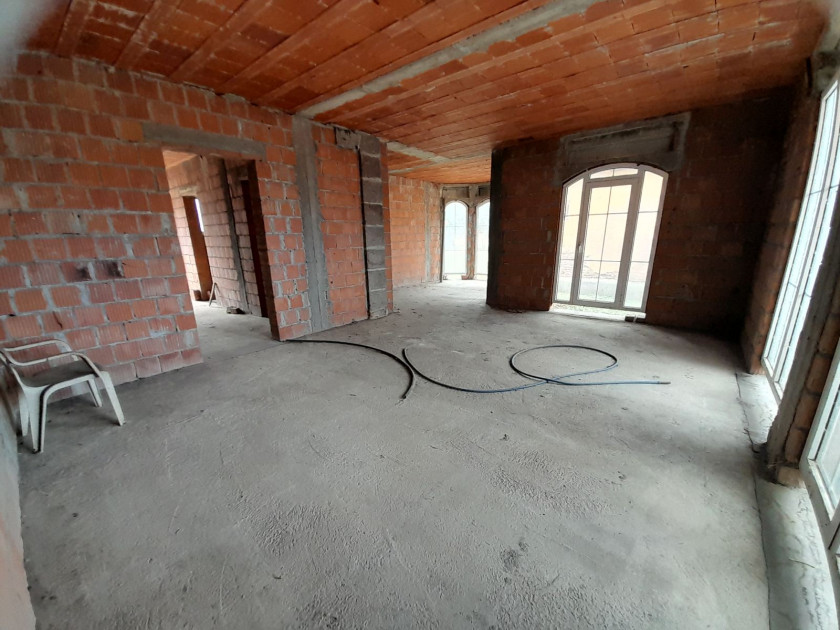 Kuća je trenutno u fazi grubih radova (u cigli), što budućem vlasniku pruža mogućnost da je uredi po sopstvenom ukusu – od rasporeda instalacija do završne estetike.