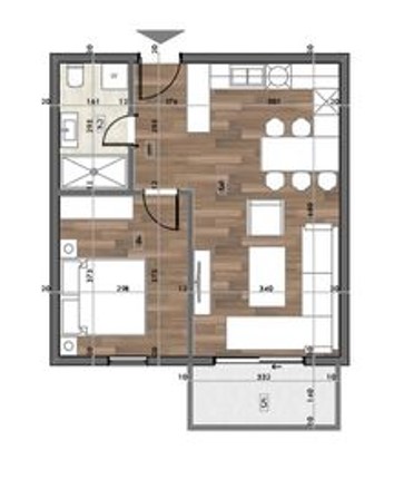 ✅ Struktura stana: Ulazni hodnik, dnevni boravak, kuhinja, trpezarija, spavaća soba, kupatilo i terasa.