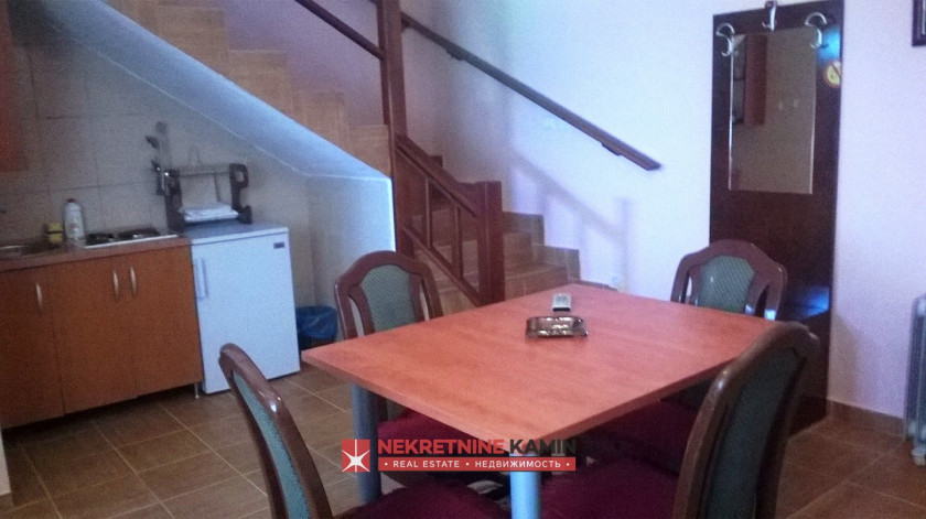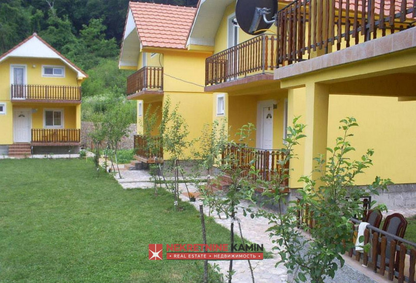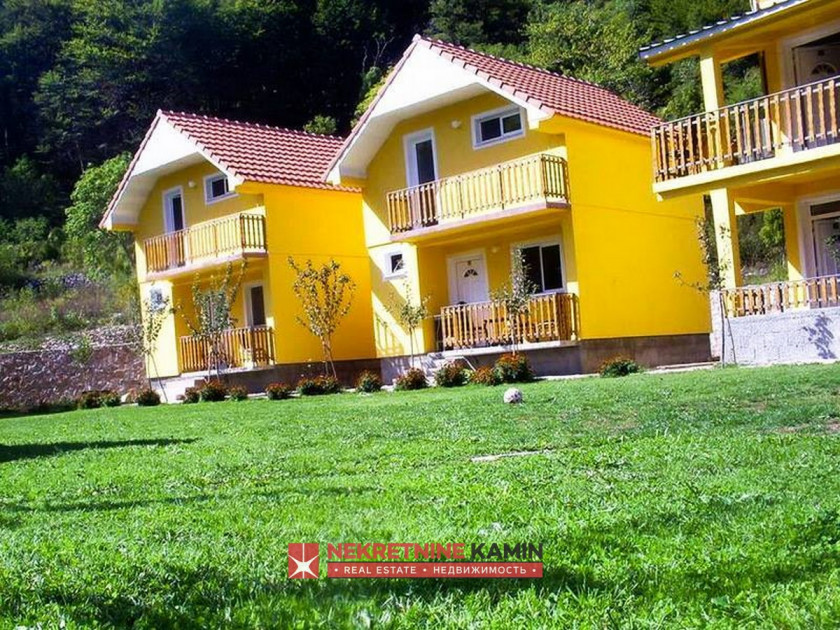 Opis: k5673 Ovo etno selo sadrži 7 vikend kućica i nalazi se na placu od 1828m2. Svaka ima dnevni boravak, mini kuhinju, kupatilo. Unutrašnjim stepenicama se ide do jedne spavaće sobe od 22m2, a od koje se mogu napraviti dvije. Svaka kućica ima poseban strujomer i izvorsku vodu. Kućice su tvrda gradnja i pravljene su za potrebe turizma jer se nalazi na granici planinske i morske klime na nadmorskoj visini od 850 metara na samo 20 kilometara od centra crnogorskog turizma, Budve, i 8 kilometara od prestonice Crne Gore, Cetinja. Tivatski aerodrom je udaljen oko 45 kilometara.