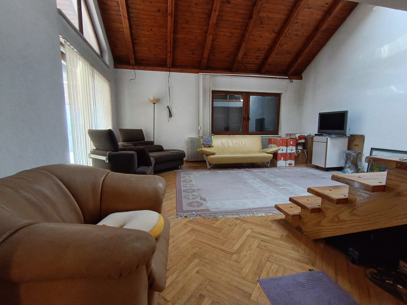 Opis: Kuca u mirnom delu naselja Erdoglija. Kvalitetna gradnja, moderan dizajn, sve ono sto ovu kucu cini posebnom. U osnovi 128m2. Uglavnom su korisceni prirodni materjali-drvo, granit... Koncipirana tako da dve porodice mogu potpuno nezavisno ziveti u njoj . U prvom delu kuce: trpezarija, kuhinja, veliki dnevni boravak iz koga se izlazi na sprat koji ima tri spavace sobe, tri terase, kupatilo i hodnik. Drugi deo kuće je jednosoban stan: spavaca soba, kuhinja, dnevni boravak, ostava kupatilo i terasa. Ispod cele kuce su dve prostorije ( podrum i ostava) i garaza. Uknjizena sa gradjevinskom dozvolom, odmah useljiva.