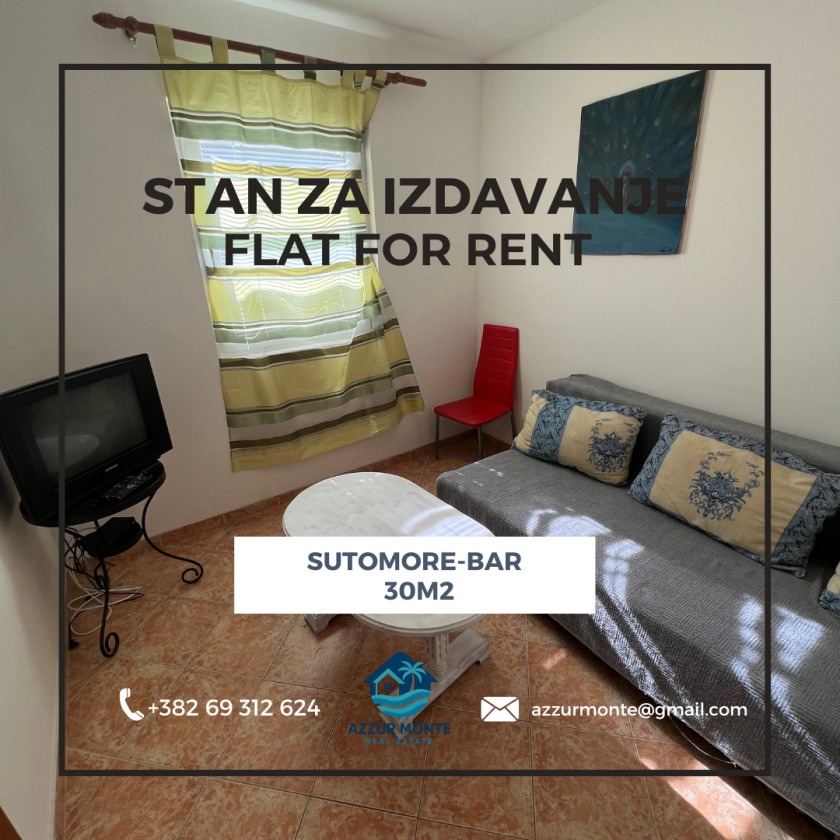Vrsta: Stan-Apartman za Duži Najam Područje: Bar Lokacija: Sutomore Adresa: Sutomore, grad Bar Cijena: €250 Stambena Površina: 30 m2 Klima Uređaj