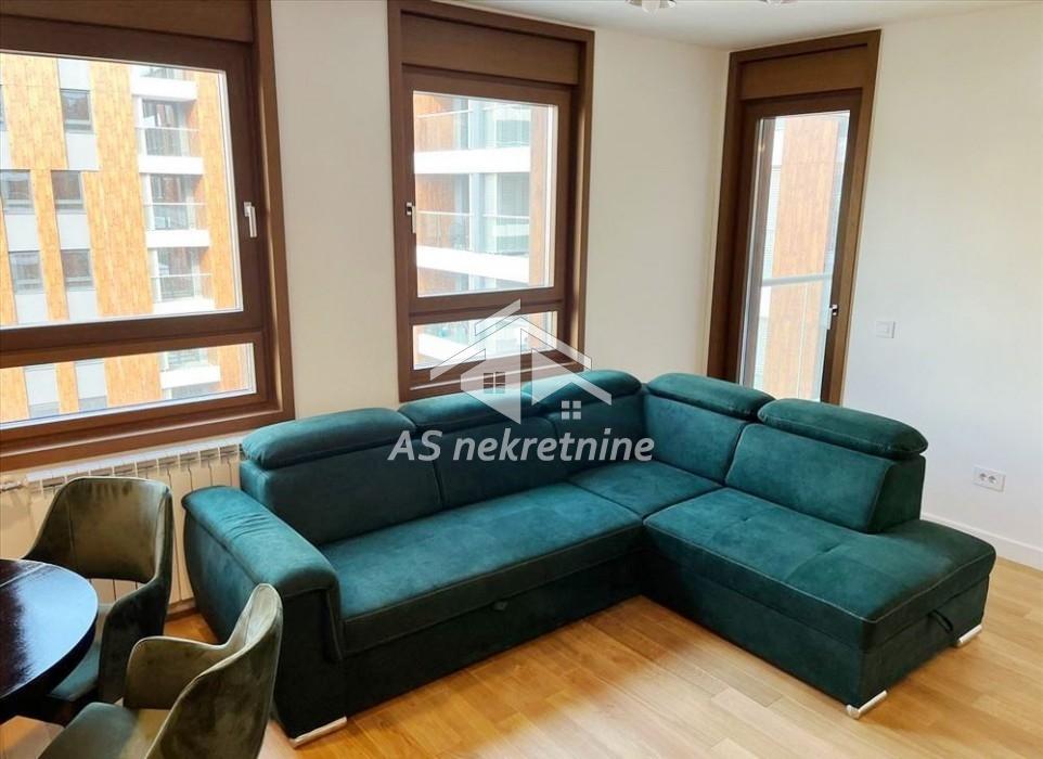 Izdaje se potpuno namešten dvosoban stan površine 48 m2, na 7. spratu novogradnje sa liftom, u luksuznom kompleksu Petica (ugao Jurija Gagarina i Nehruove).