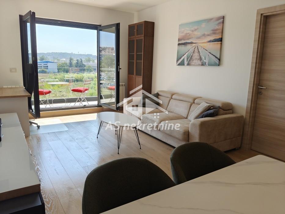 Izdaje se luksuzno opremljen i komforan dvosoban stan od 60 m2 u novoizgrađenoj zgradi Square 43. Stan se nalazi na trećem spratu, odlikuje ga moderan dizajn, odlična organizacija prostora i visok kvalitet opreme i nameštaja.