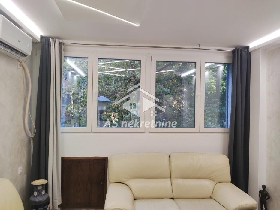 Izdaje se potpuno renoviran i kompletno namešten stan površine 52 m2, smešten u mirnoj ulici na Banovom brdu, preko puta City Hall-a. Stan je renoviran ove godine i odmah je useljiv.