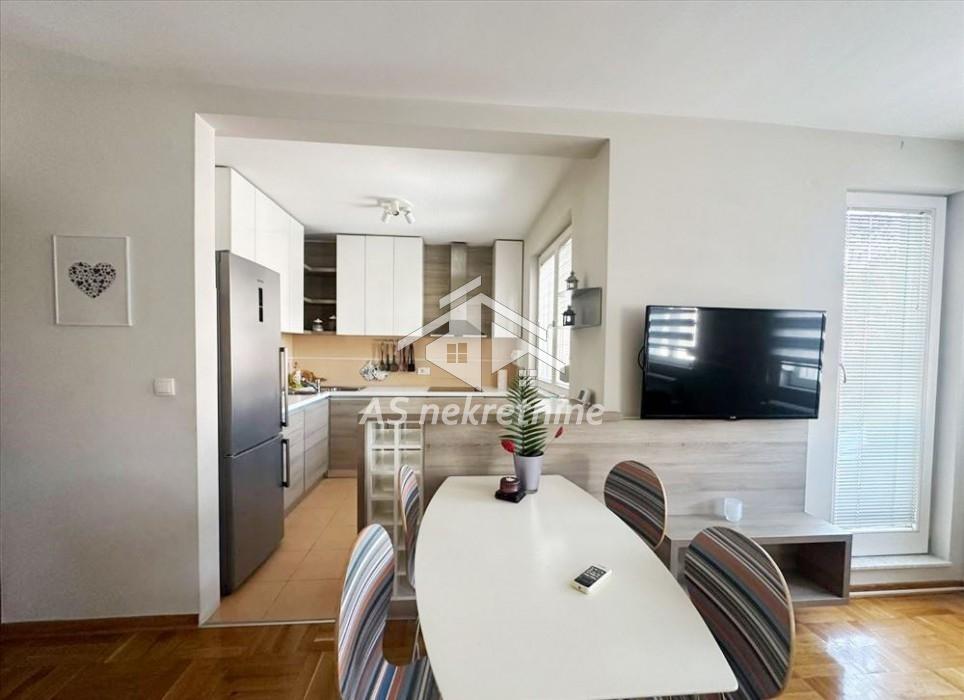 Struktura: Prostran dnevni boravak sa trpezarijom, kompletno opremljena kuhinja, tri odvojene spavaće sobe, kupatilo, odvojeni toalet (sa mašinama za pranje i sušenje veša), dve terase.