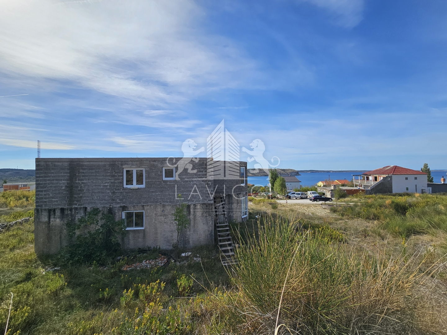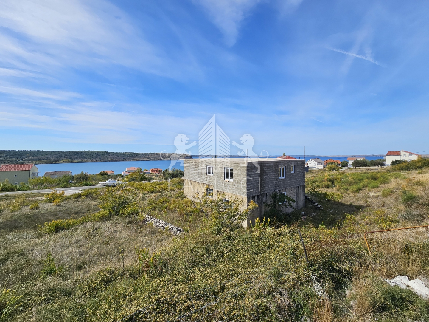 Na prodaju izvrsna investicijska prilika – nekretnina s već započetom gradnjom i odobrenim projektom za kuću s 7 zasebnih apartmana, smještenu u mirnom mjestu Rtina, između Zadra i Paga, svega 400 metara od mora.