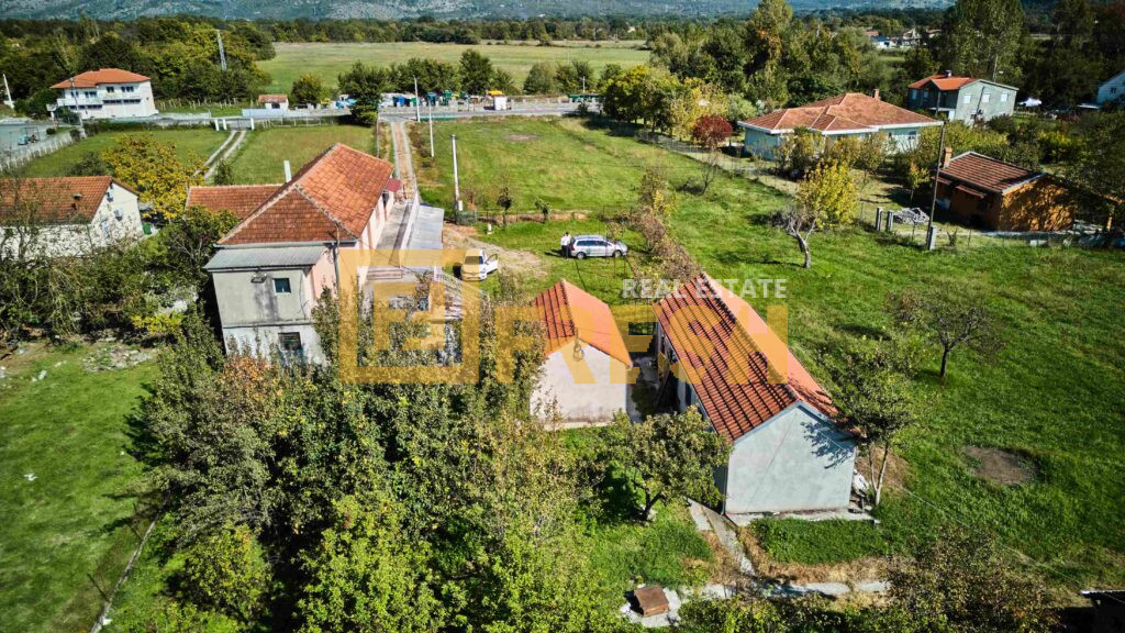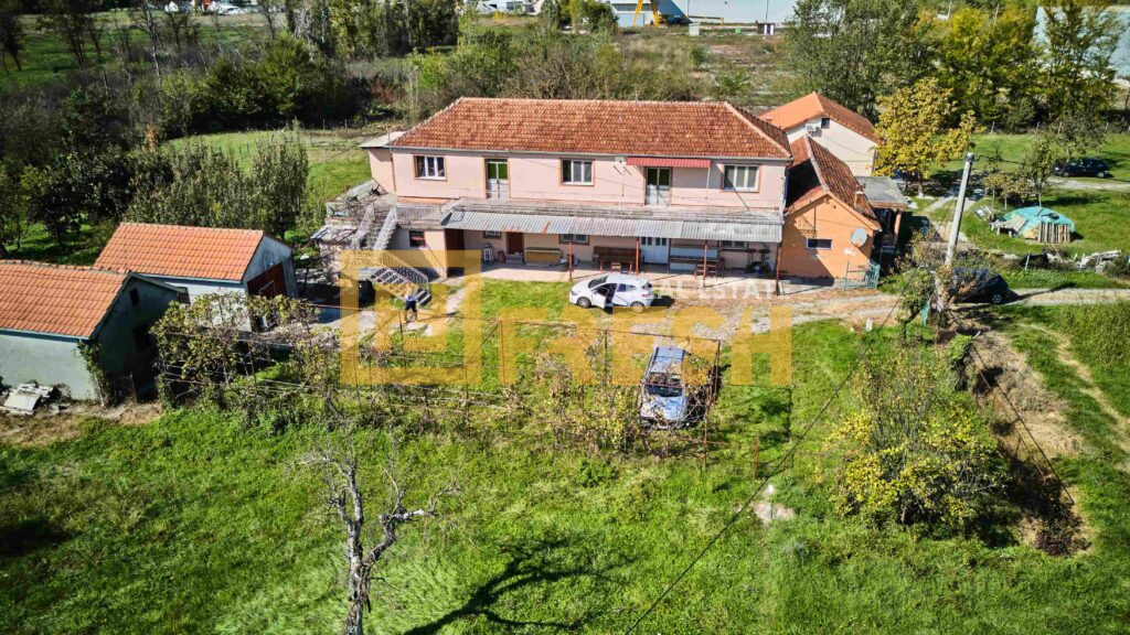Na placu se nalaze: Kuća površine 200m2, 2 garaže i 2 pomoćna objekta.