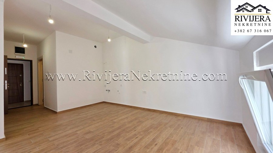 Opis: Jednosoban stan novogradnja Meljine Herceg Novi. Povrsina 38m2, potkrovlje.