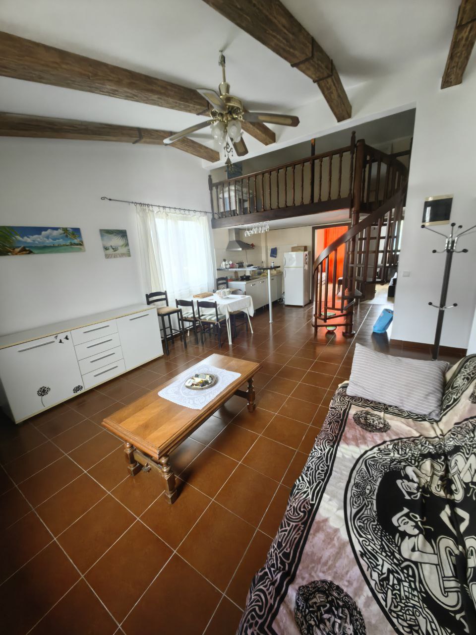 Raspored stana uključuje kuhinju kombinovanu sa dnevnim boravkom, terasu, 2 spavaće sobe, kupatilo i galeriju. Stan je namešten i opremljen svim potrebnim aparatima. Stan se nalazi na 3. spratu zgrade bez lifta. Parking je dostupan u blizini zgrade. Udaljenost od mora je 500 metara. Period iznajmljivanja: od 3 dana do mesec dana. Cena: 350 evra do 1. juna ili 500 evra za period od 12 meseci. Mesečna uplata + komunalne usluge. Plaćanje u celosti: prvi mesec + poslednji mesec + depozit. Kućni ljubimci nisu dozvoljeni.