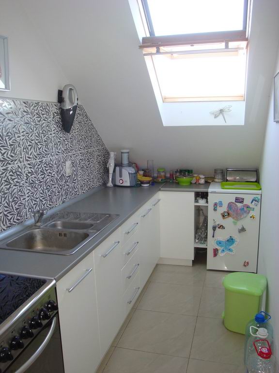 Opis: Centar - dvosoban stan površine 40m2 (stan ima oko 45m2 poda, ali je zbog kosina upisana površine u katastru 40m2), II sprat (potkrovlje), grejanje na klimu (niski računi), velux krovni prozori, ostala spoljna stolarija je PVC, laminat, interfon, prodaje se sa kuhinjom, uknjižen 1/1.