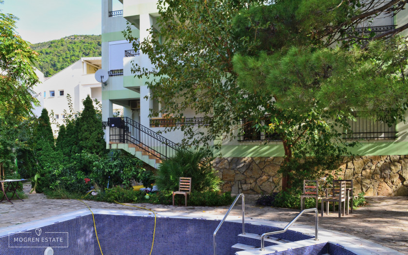 Opis: Prodaje se stilan stan sa dvije sobe u klubskoj zgradi sa bazenom i dvorištem.