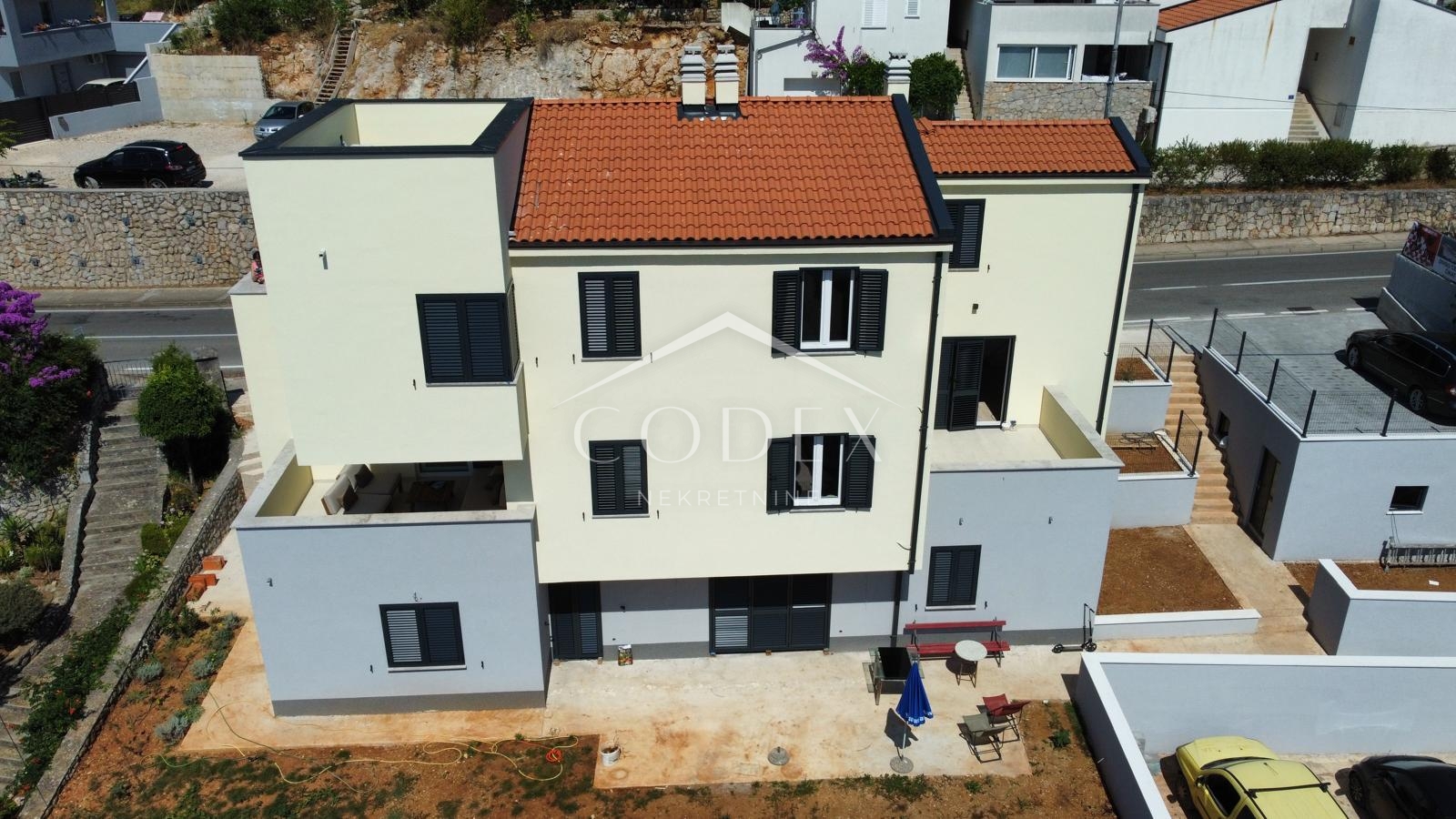 Iako novogradnja, zgrada je projektirana s posebnim naglaskom na autentični mediteranski stil – spoj tradicionalne arhitekture i modernih linija pruža osjećaj elegancije i topline doma.