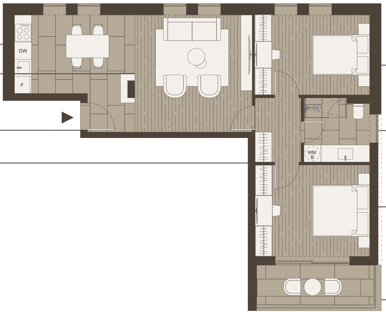 Kuhinja – 10.76 m²Spavaća soba – 11.20 m²Dnevna soba – 16.77 m²Kupatilo – 5.02 m²Hodnik – 2.82 m²Glavna spavaća soba – 12.80 m²Koridor – 3.53 m²Terasa – 5.47 m²