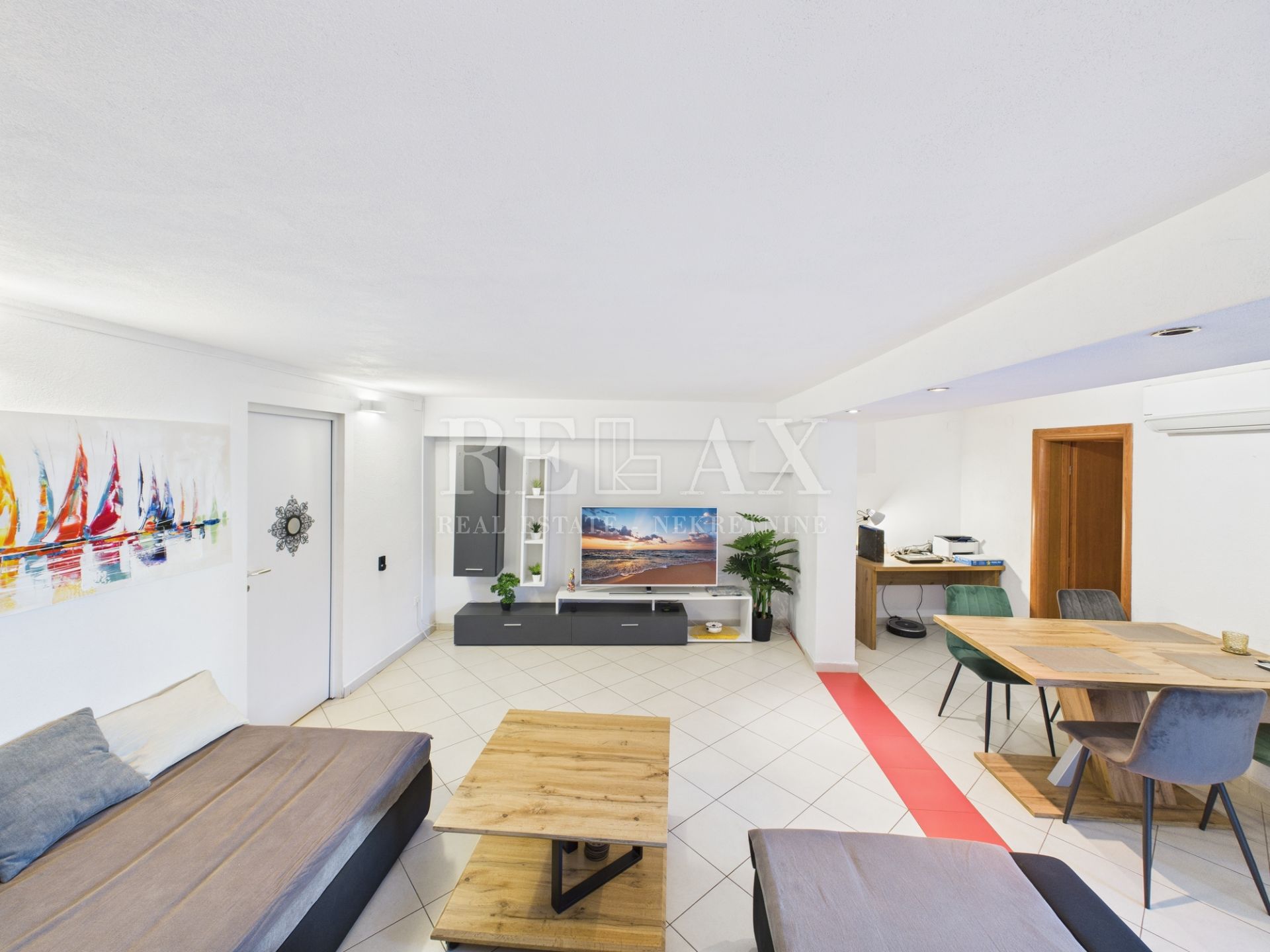 Opis: U mirnom dijelu Jadranova, na svega 300 metara pješice od mora i plaže, prodaje se prostrani trosobni stan smješten u suterenu zgrade iz 2005. godine. Stan ukupne površine 86,04 m² sastoji se od dnevnog boravka, kuhinje s blagovaonicom, tri spavaće sobe, kupaonice, hodnika i praktičnog spremišta. Poseban naglasak je na natkrivenoj terasi površine 12 m² s roštiljem, idealnoj za obiteljska druženja i opuštanje na otvorenom.