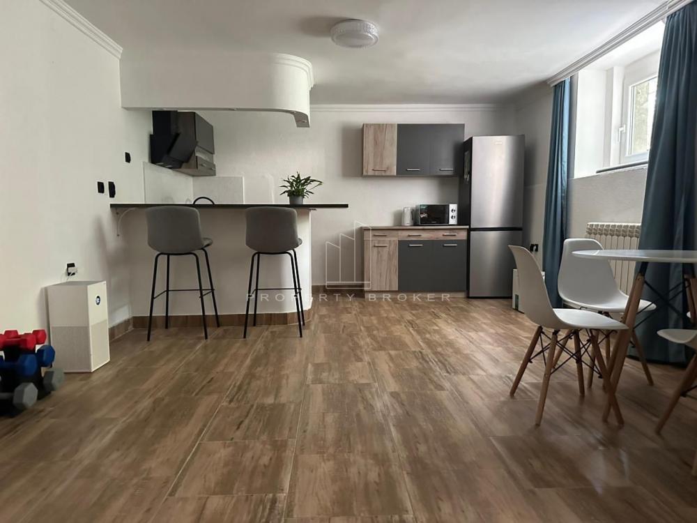 Stan je smešten u suterenu stambene zgrade, funkcionalnog rasporeda: predsoblje, dnevna soba sa kuhinjom i trpezarijom, spavaća soba i kupatila.