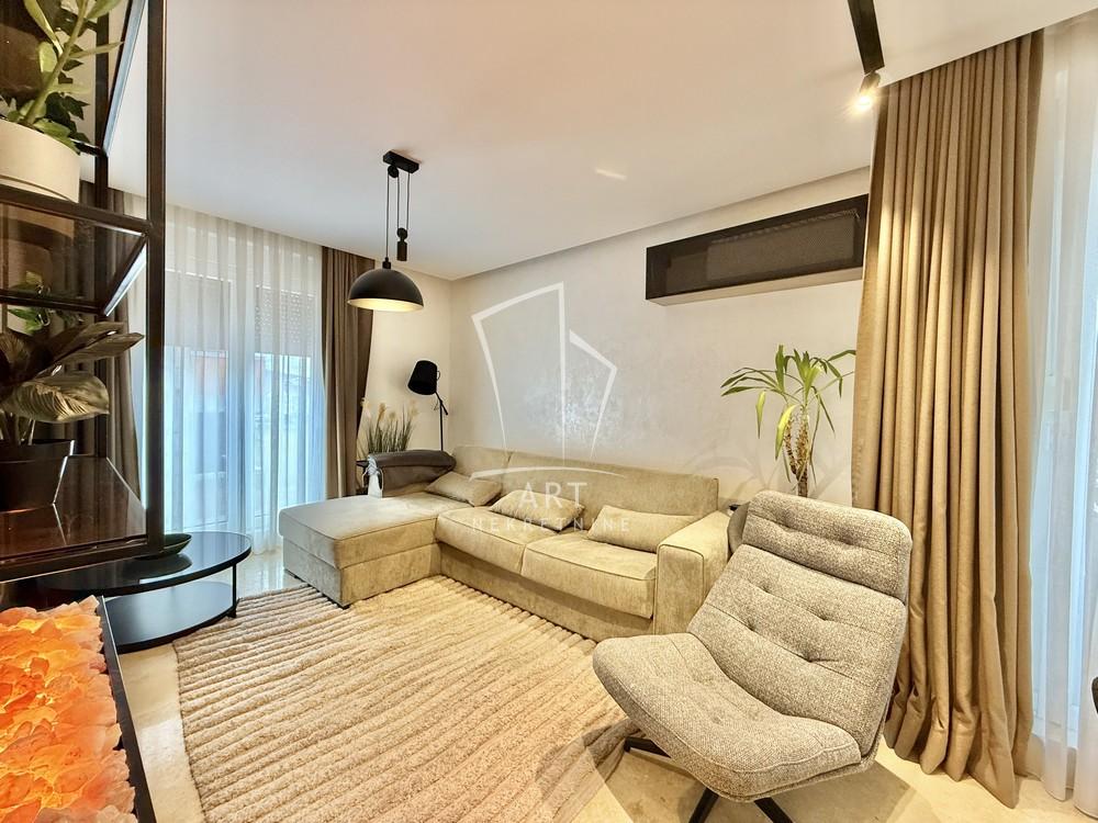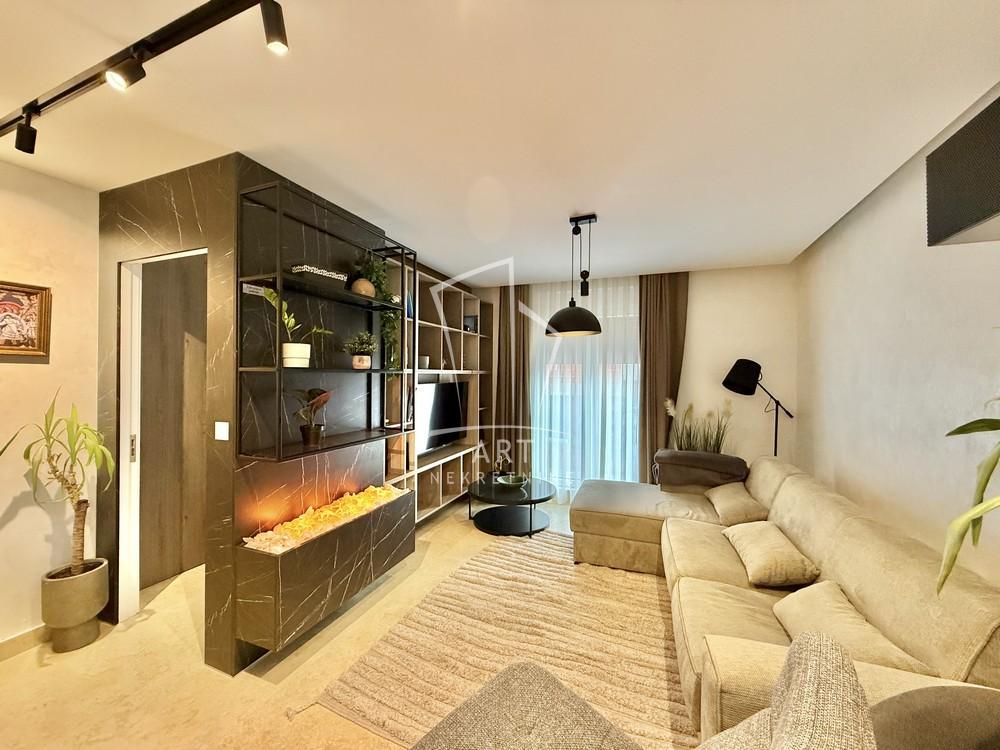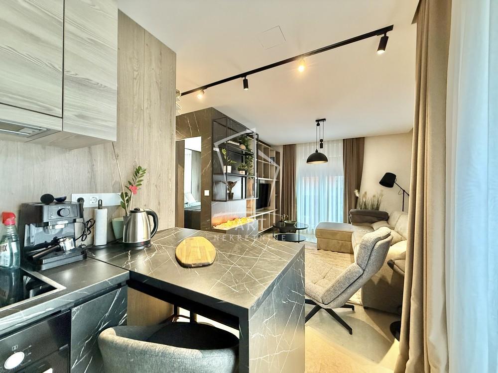Nalazi se na četvrtom, od ukupno šest spratova. Sastoji se od predsoblja, dnevne sobe sa trpezarijom i kuhinjom, spavaće sobe, kupatila i terase. Dvostrano je orijentisan, prema jugu i zapadu. Grejanje je podno, a zahvaljujući smart home sistemu možete upravljati stanom na daljinu.