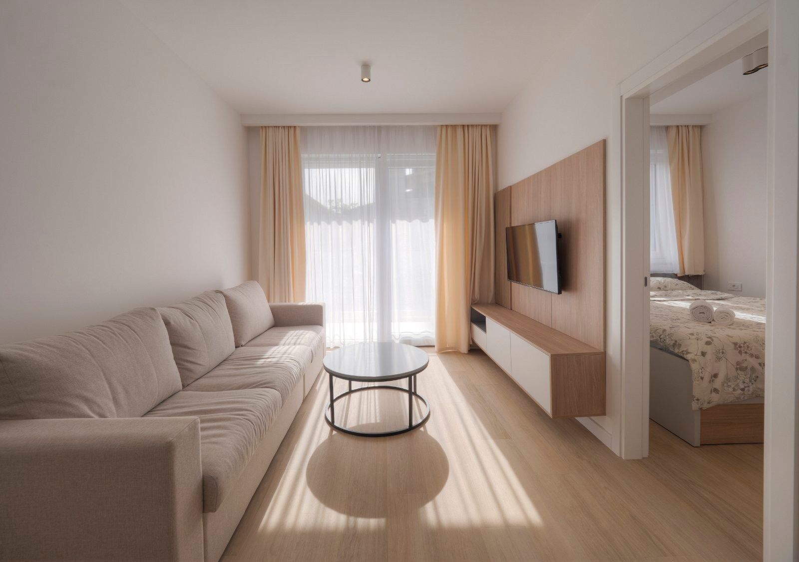 Opis: Izdaje se luks jednosoban stan u Bečićima, u novom apart-hotel objektu Horizon.