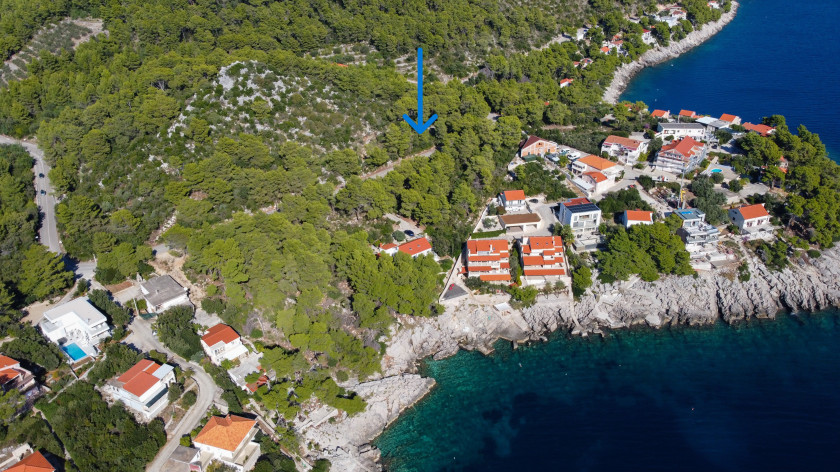 S viših dijelova zemljišta pruža se spektakularan, neometan pogled na more, okolne otočiće, otok Lastovo te zelenilo u okruženju.