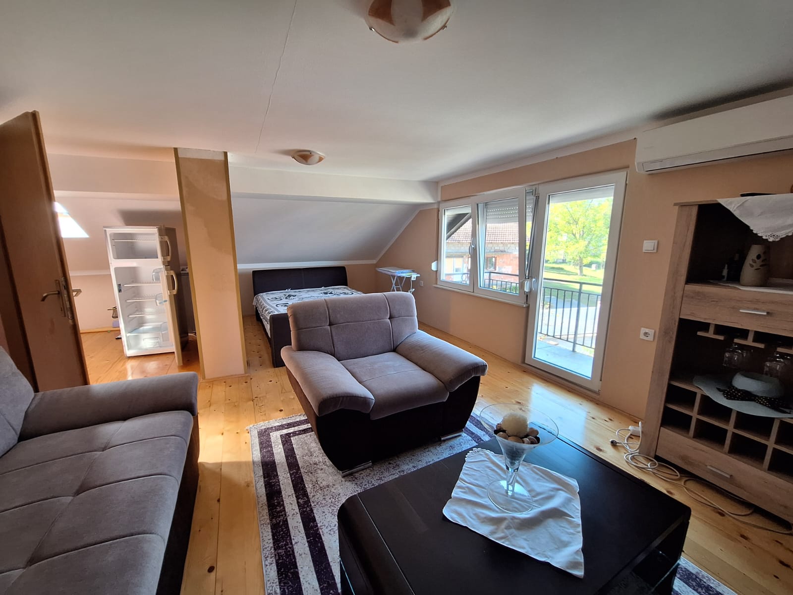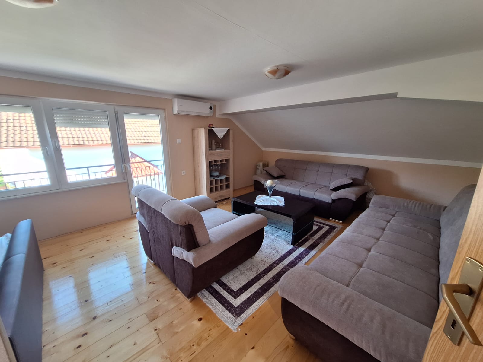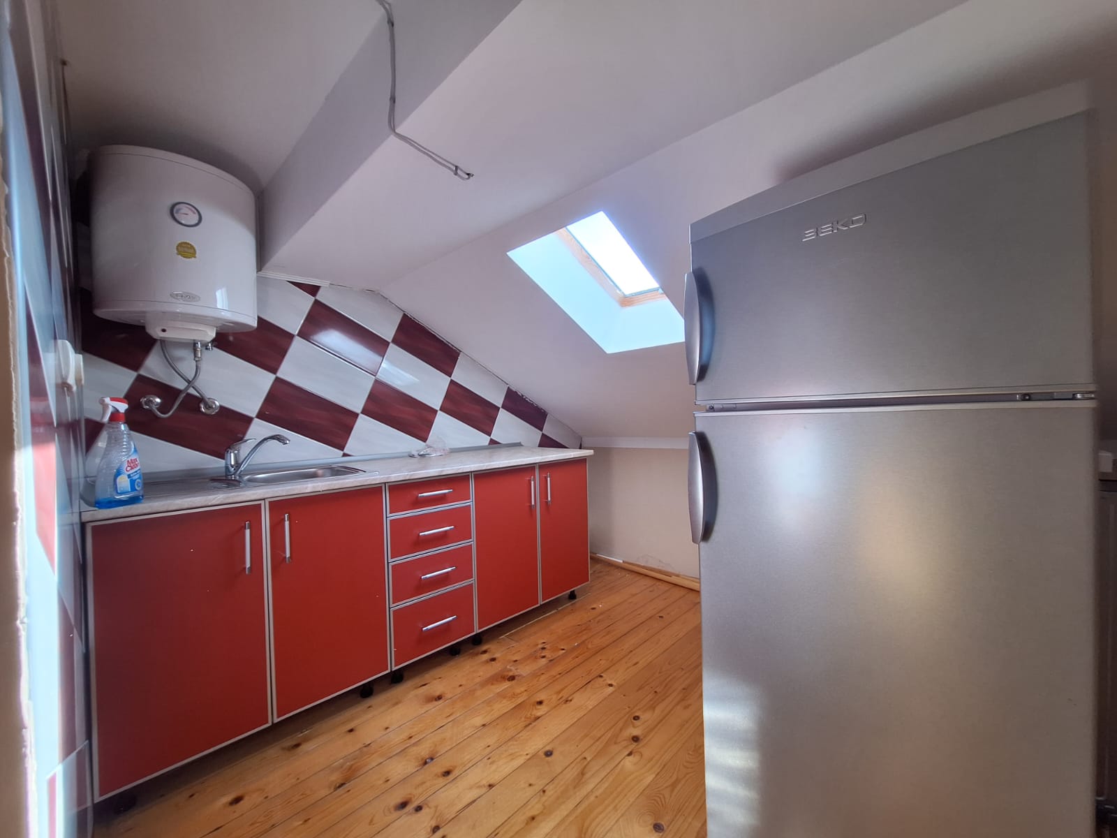 Vanjske stepenice vode u potkrovlje koje se stastoji od ulaznog hodnika, kupatila, spavaće sobe, kuhinje i trpezarije u sklopu dnevnog boravka sa izlazom na balkon.