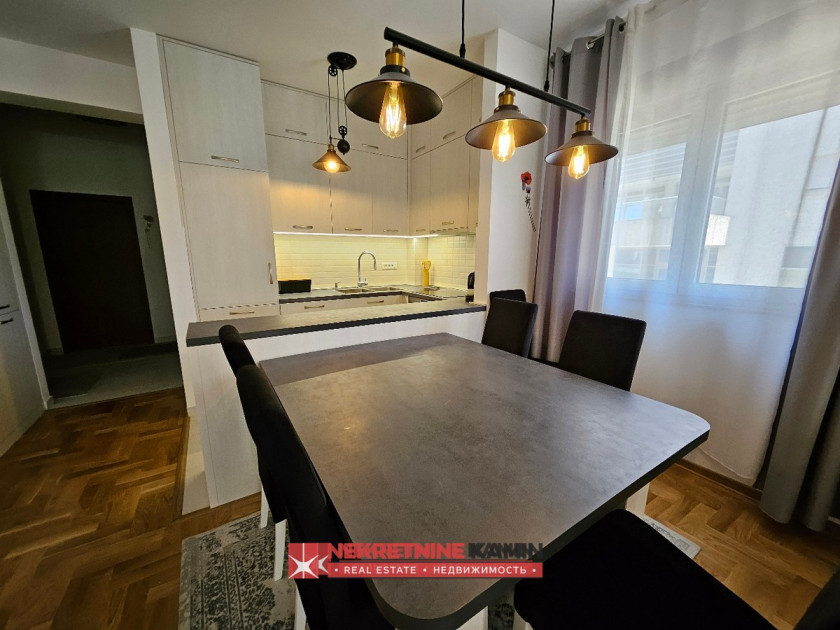Stan je kompletno opremljen modernim nameštajem i tehnikom, spreman za useljenje bez dodatnih ulaganja.