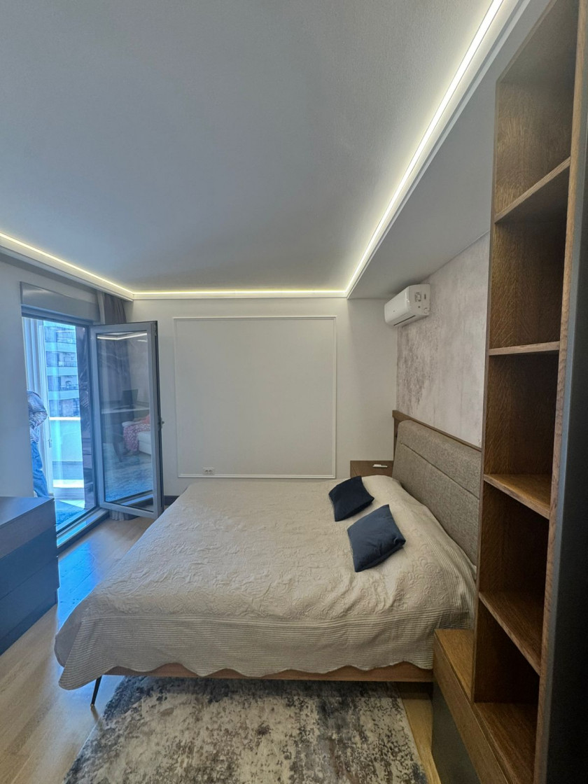 Opis: Сдается на годовую аренду новая квартира с двумя спальнями и кабинетом, с дизайнерским ремонтом в Будве, в районе Розино.