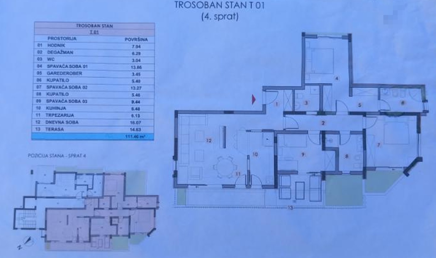 Smješten na 4. katu (ukupno 4 kata, lift)