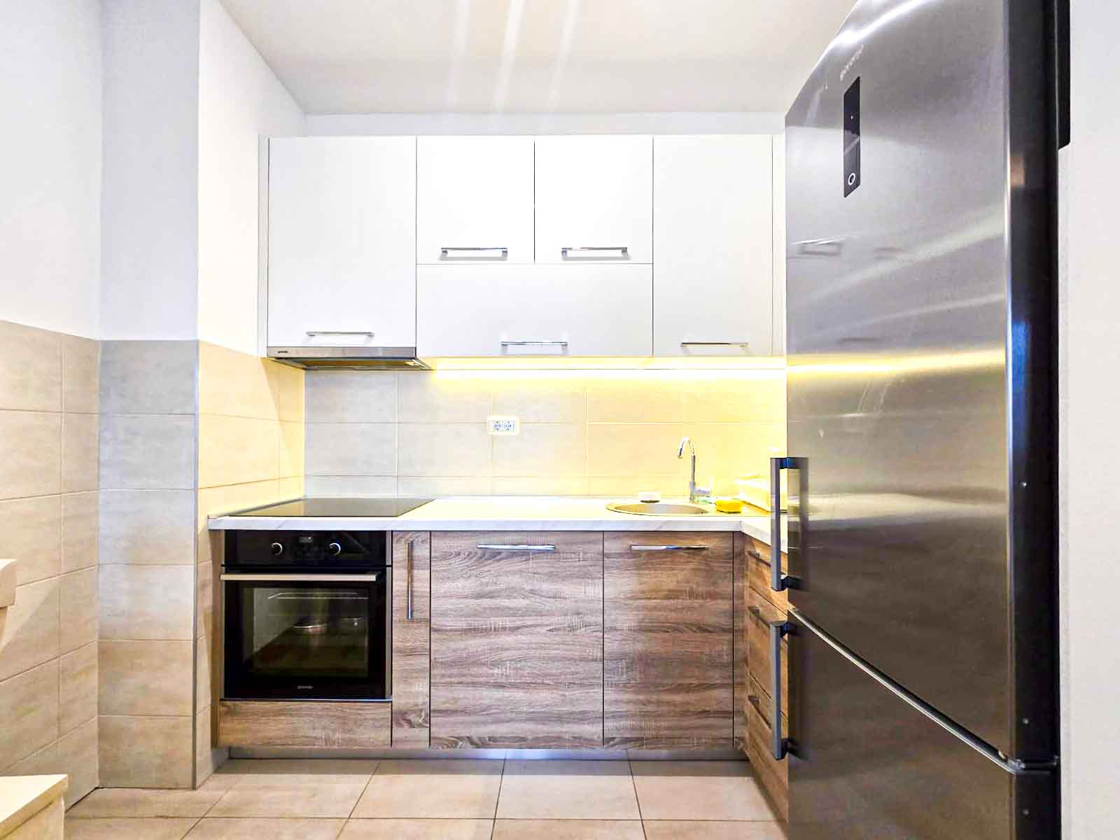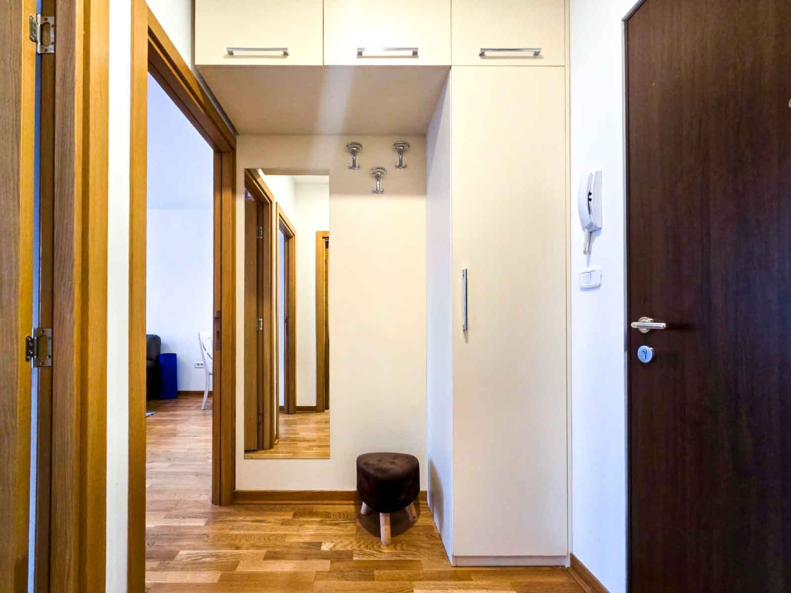 Struktura stana: ulazni hodnik, dnevni boravak sa trpezarijom i kuhinjom, spavaća soba, kupatilo, balkon sa pogledom na dvorišni dio.