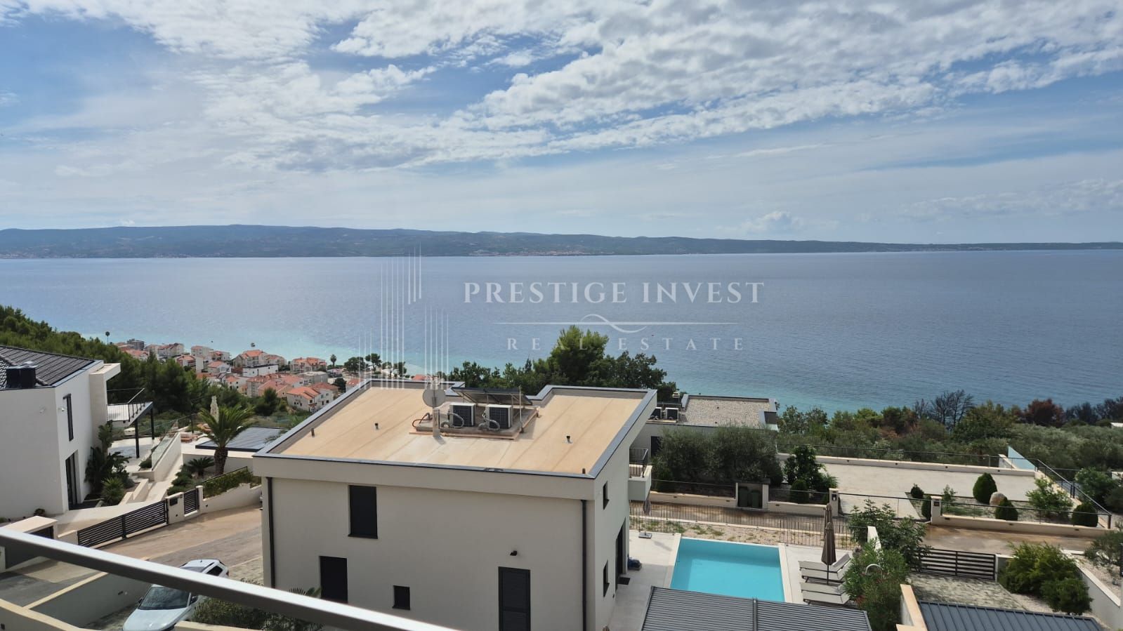 Na prodaju je luksuzna dizajnerska vila smještena u mirnom dijelu u blizini Omiša, s prekrasnim panoramskim pogledom na more. Vila je moderno projektirana, potpuno opremljena i namještena vrhunskim talijanskim namještajem te spremna za useljenje.